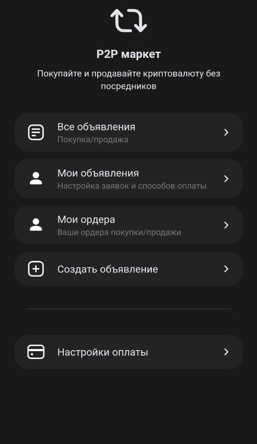 Быстрый обмен, хранение и P2P-продажи криптовалют с отправкой по контактам