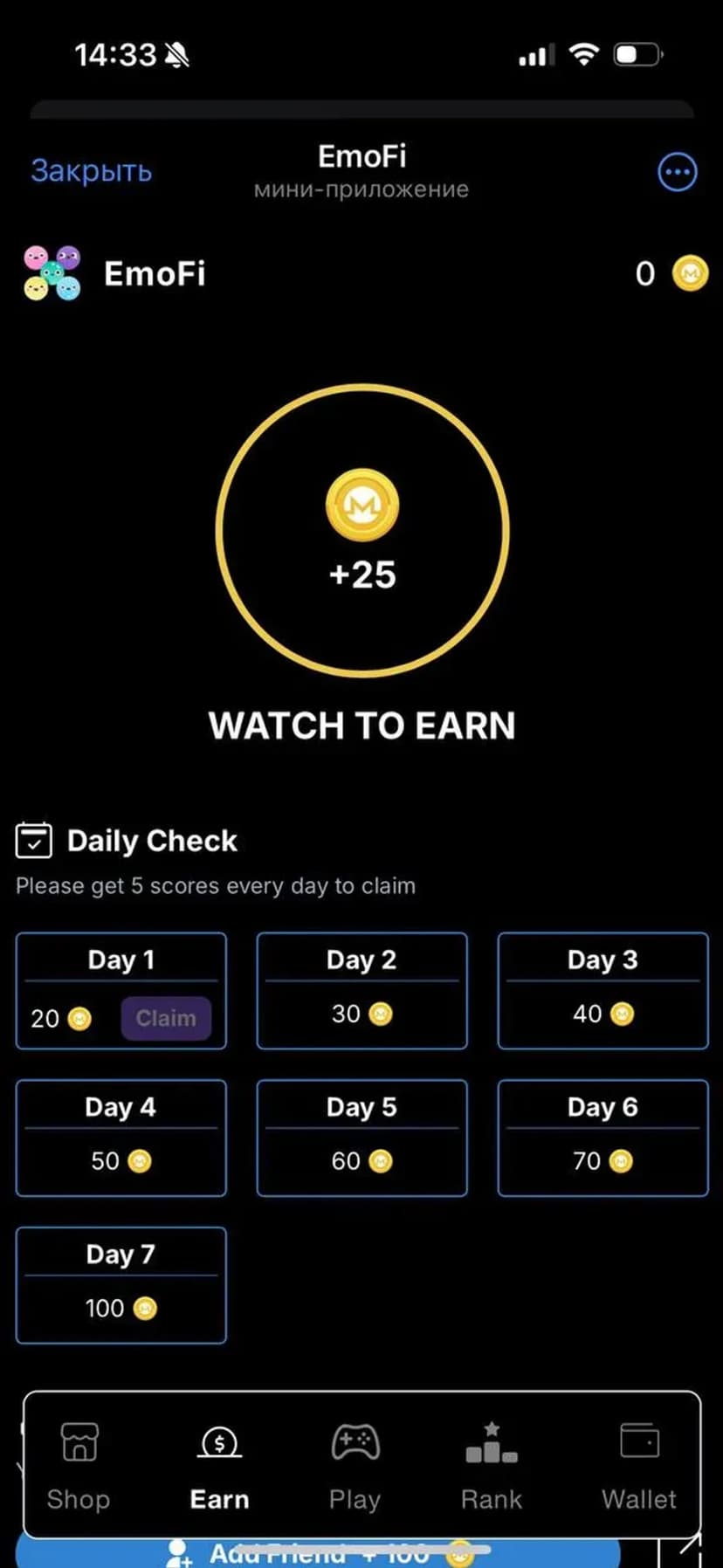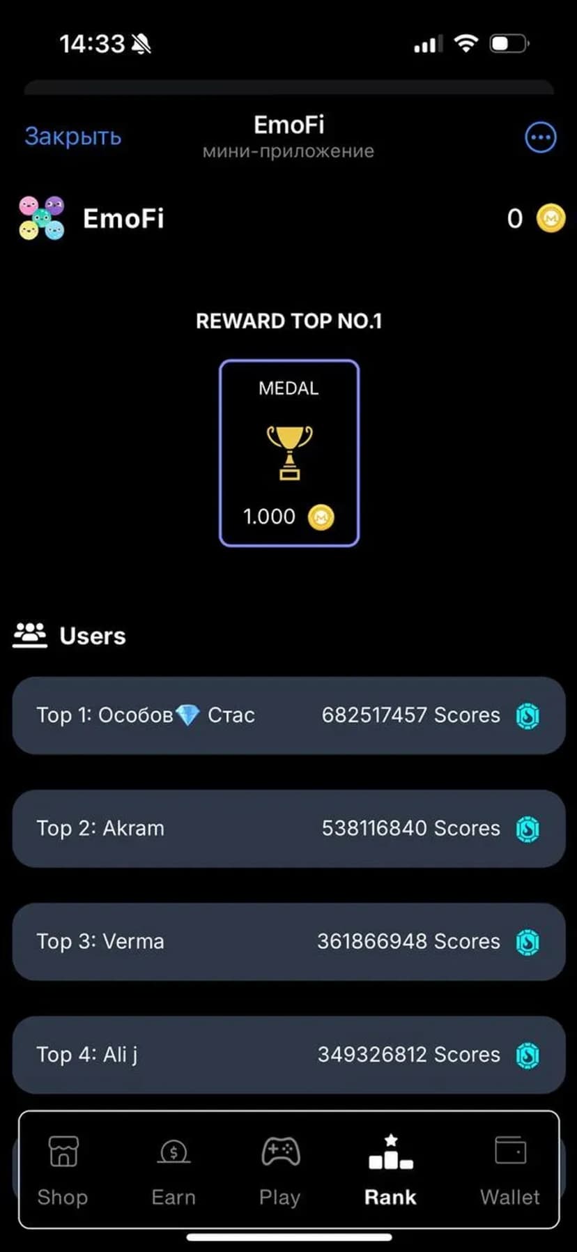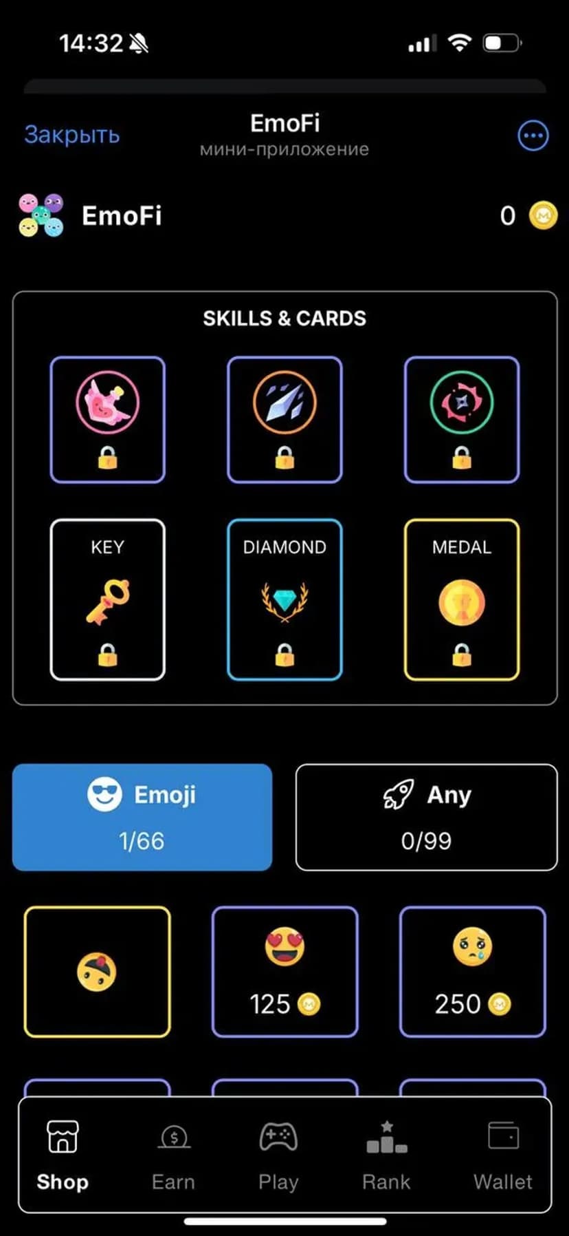 EmoFi сочетает лёгкие мини‑игры с ярким оформлением эмодзи и элементами GameFi: развлечения дополняются системой достижений и внутриигровых наград.