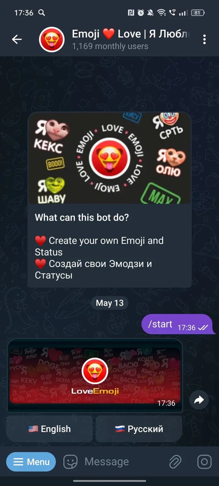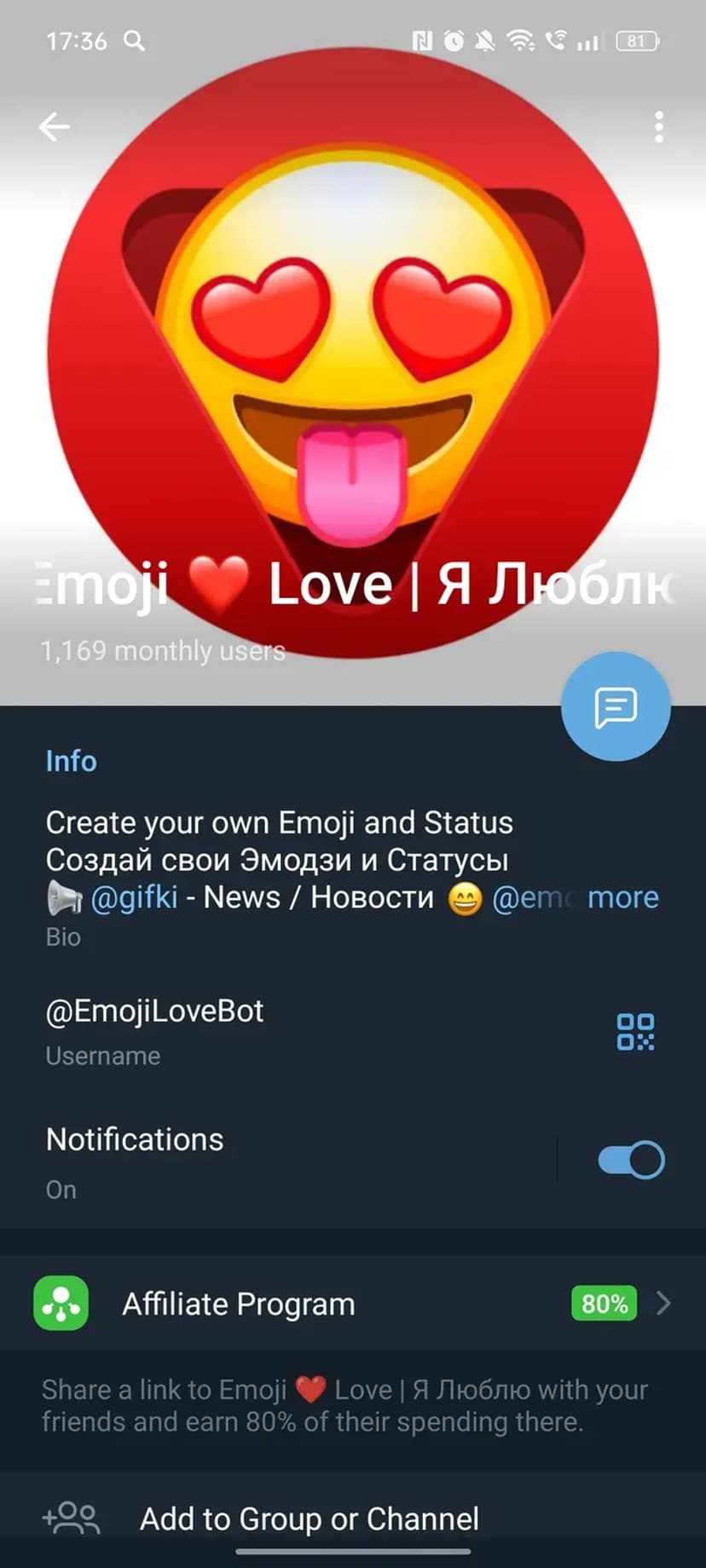 *Нажимая "Открыть в Telegram", вы перейдете к приложению Emoji ❤️ Love | Я Люблю в мессенджере Telegram