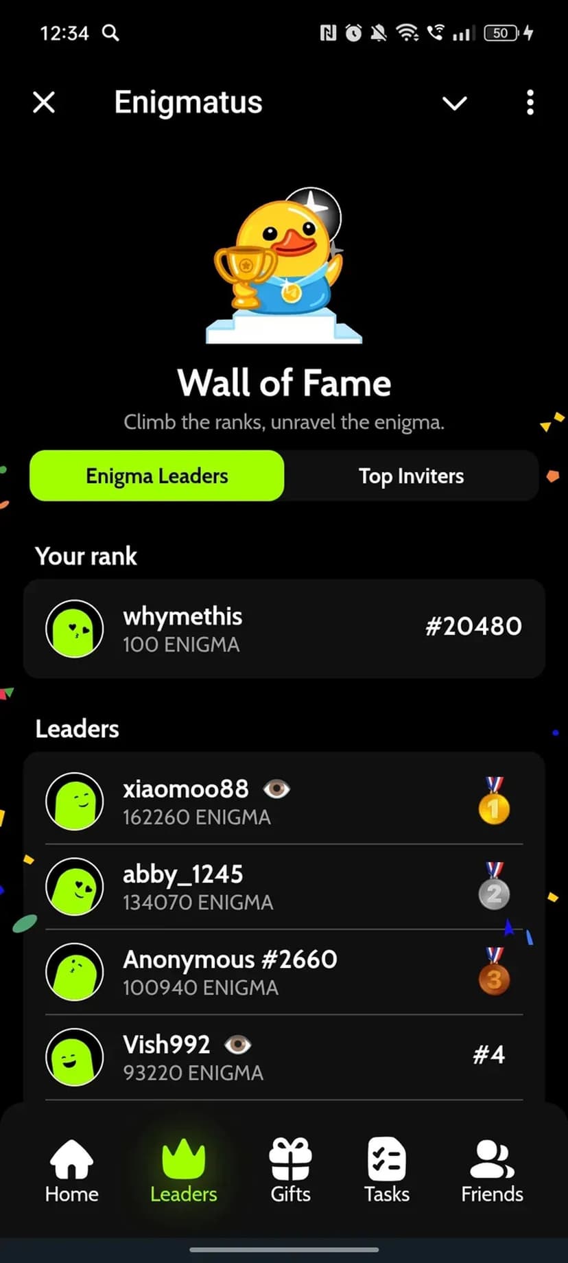 Enigmatus предлагает уникальные энигмы — от простых логических ребусов до многоступенчатых задач. За верное решение участники получают внутриигровые награды.