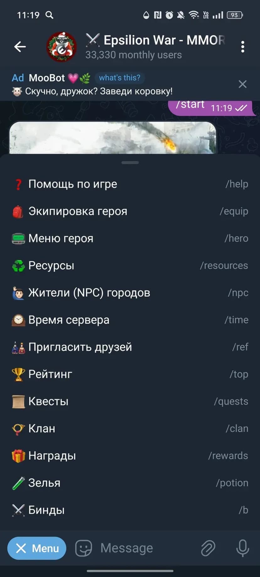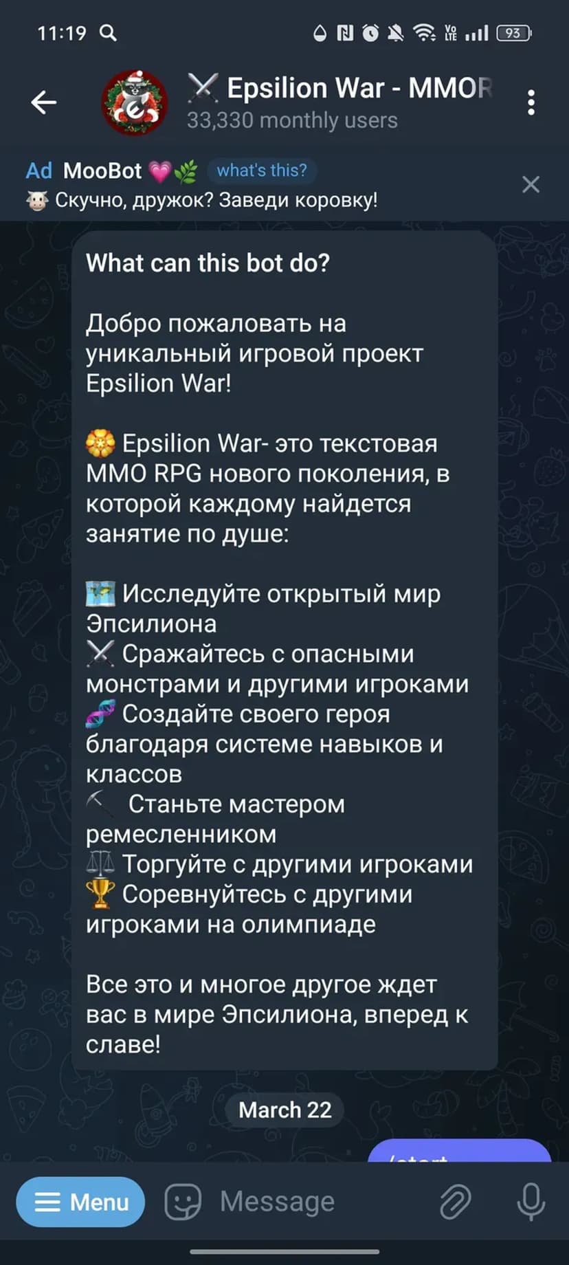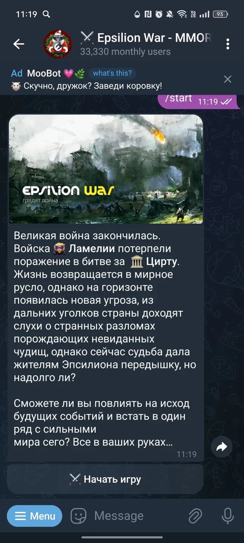 *Нажимая "Открыть в Telegram", вы перейдете к приложению ⚔️ Epsilion War - MMORPG в мессенджере Telegram