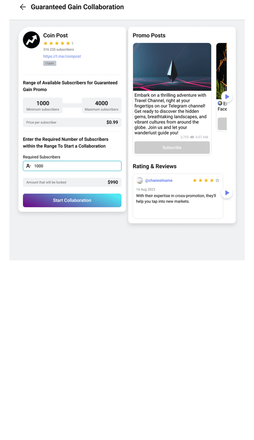 Гарантированный взаимный пиар каналов с резервом средств и автоматической компенсацией