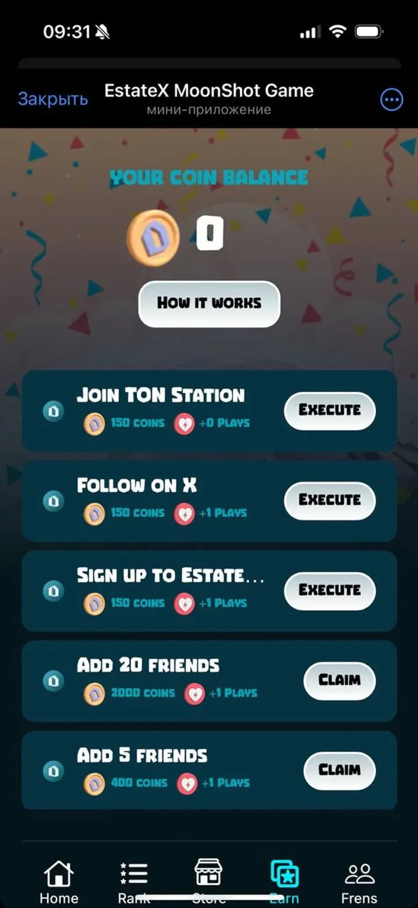 *Нажимая "Открыть в Telegram", вы перейдете к приложению EstateX MoonShot Game в мессенджере Telegram