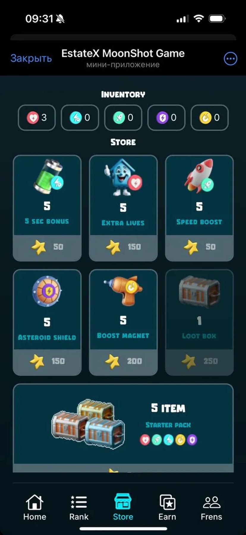 EstateX MoonShot Game — аркадная игра для проверки реакции и внимательности с элементами earn-to-play. Каждый месяц более 49 000 пользователей играют в короткие динамичные раунды и получают внутриигровые токены $ESX за успехи и активность.