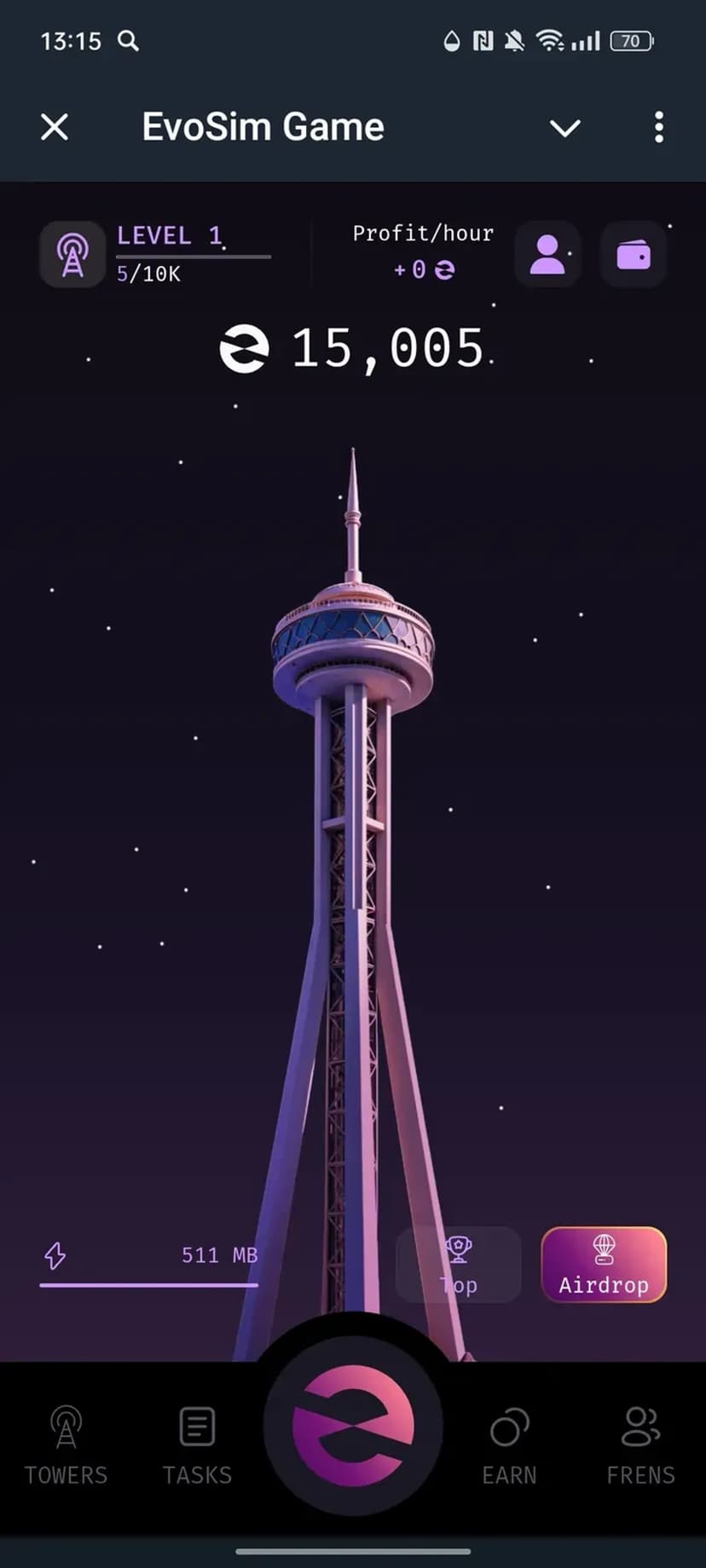 EvoSim Game — экономическая игра в Telegram, где вы создаёте и развиваете собственную телеком‑империю на карте реального мира и получаете токены TON за активность.