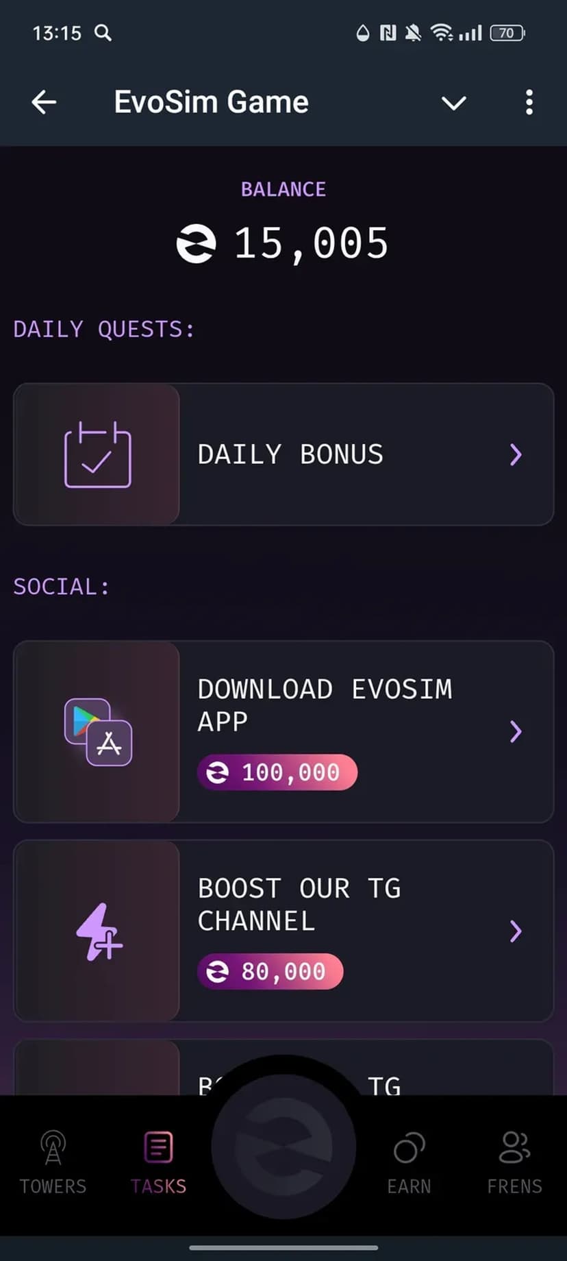 - Ежедневная активность приносит начисления токенов TON, которые накапливаются до запуска основной экономики.