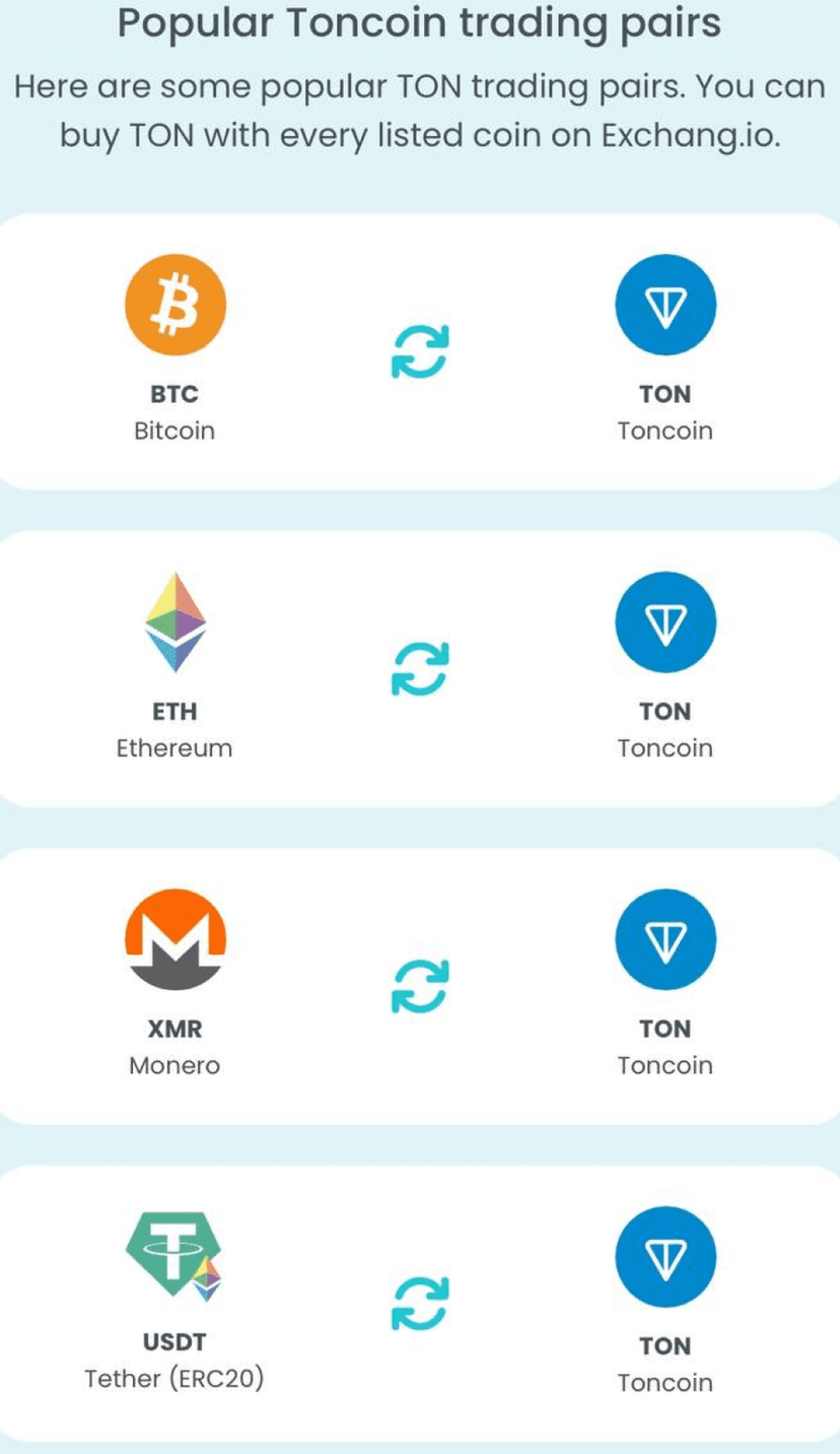 Exchangio — сервис обмена криптовалют внутри Telegram с поддержкой более 750 монет и токенов. Поддерживаются кроссчейн‑свопы между разными блокчейнами, что позволяет менять редкие и популярные активы без лишних шагов.