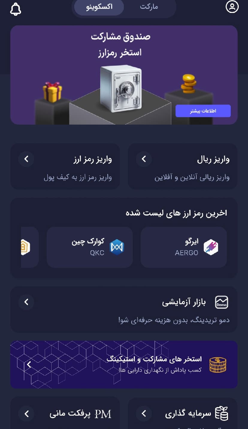 Excoino объединяет инструменты для торговли, обмена и стейкинга криптовалют в одном окне мессенджера, обеспечивая быстрый доступ к управлению активами и истории операций.
