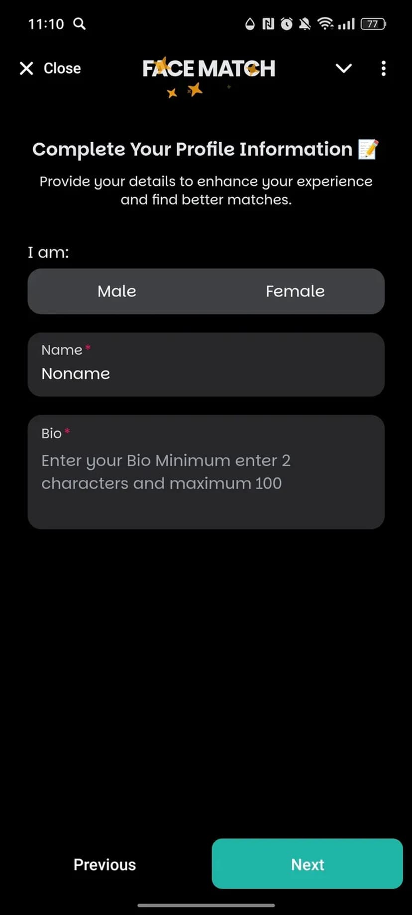 Face Match — мини‑приложение для быстрых знакомств, полностью интегрированное в Telegram через чат‑бота. Для начала достаточно авторизоваться через Telegram и заполнить краткую анкету.