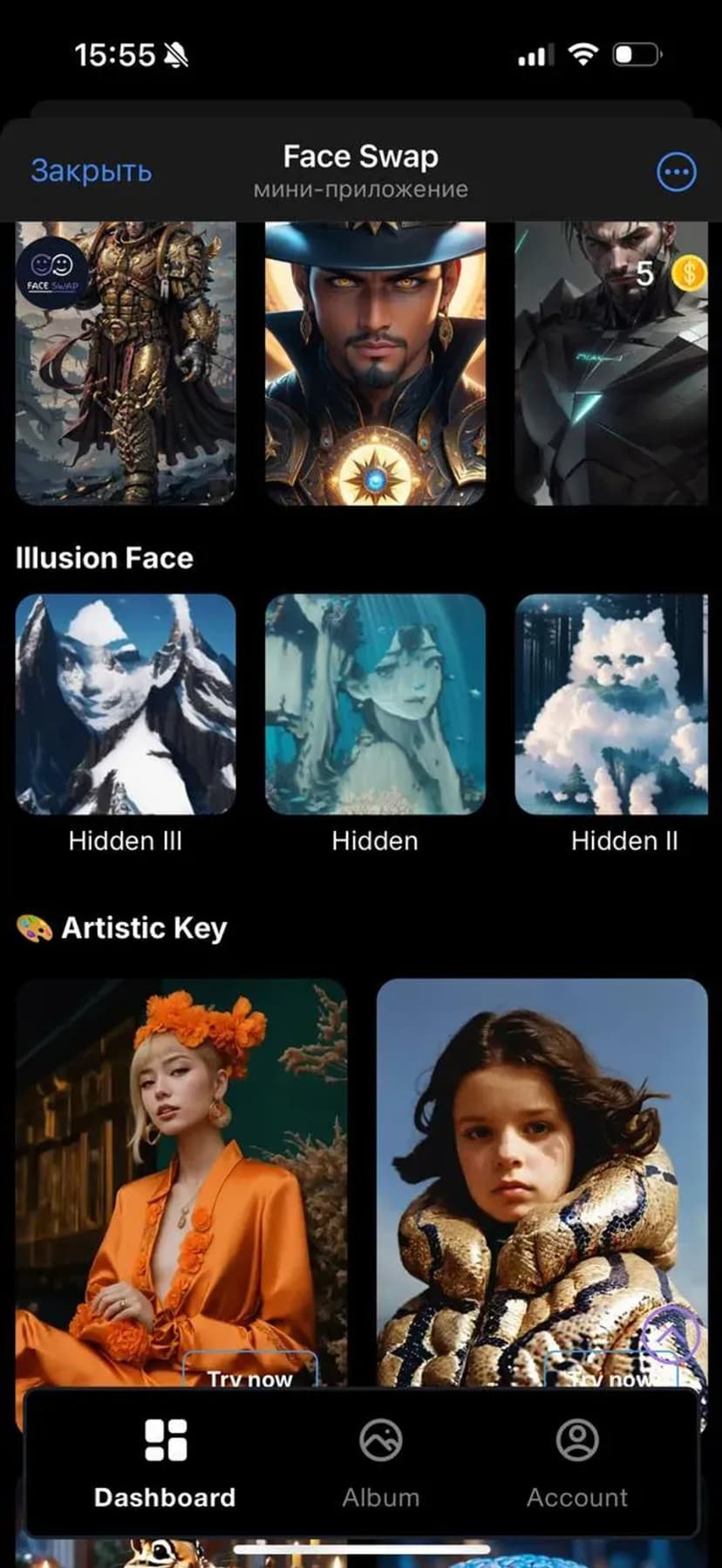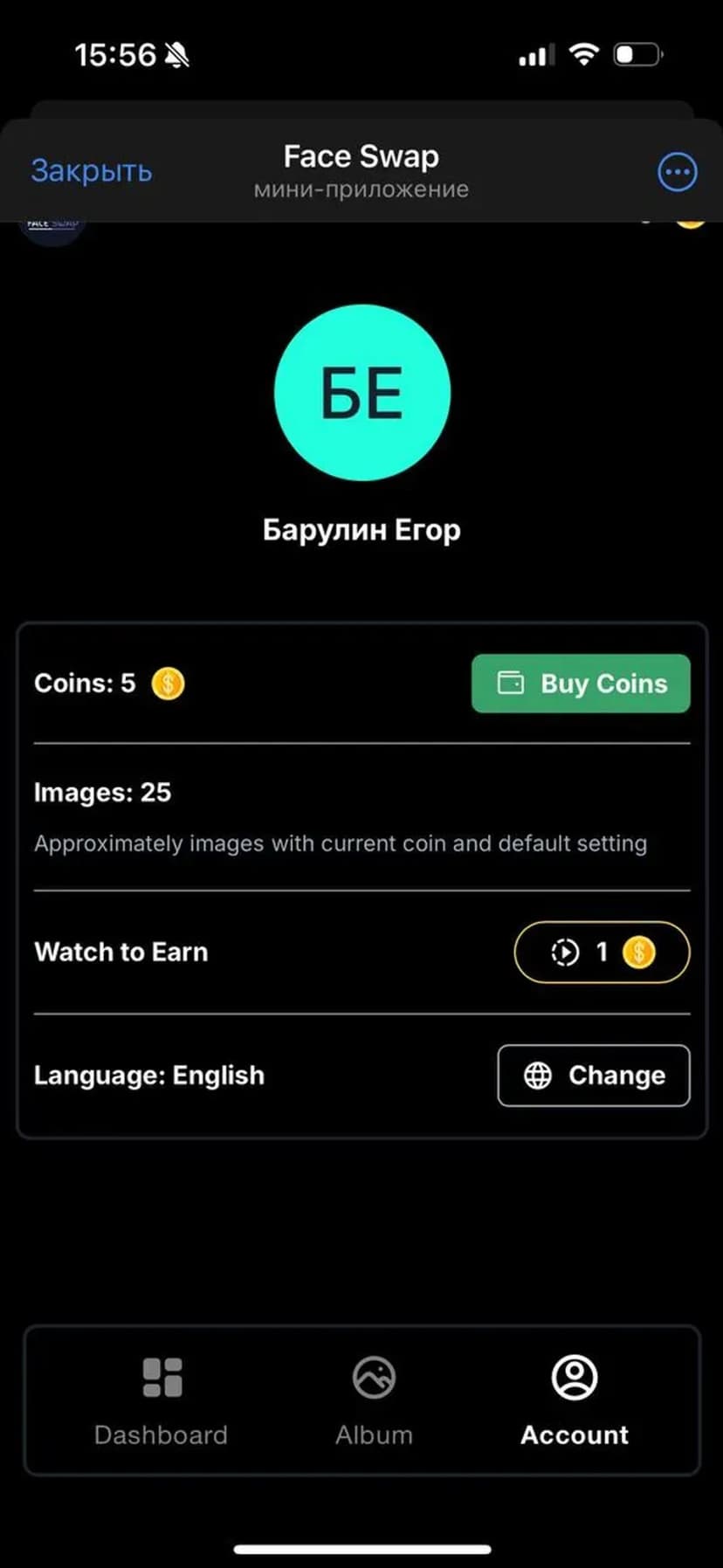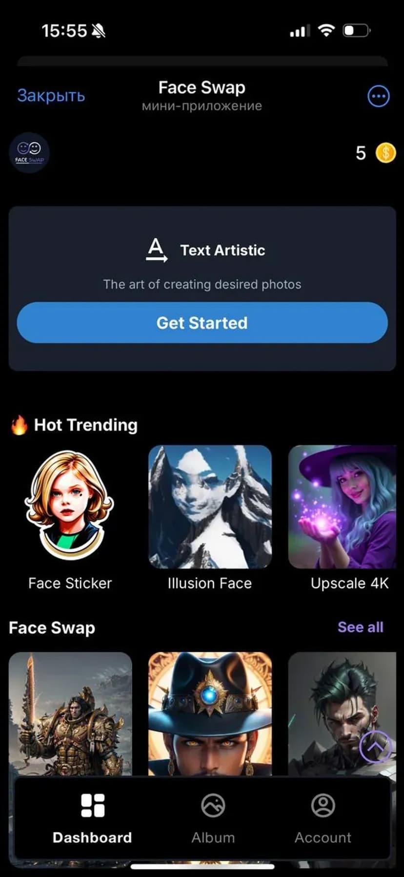 *Нажимая "Открыть в Telegram", вы перейдете к приложению Face Swap в мессенджере Telegram