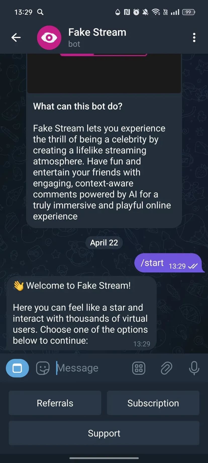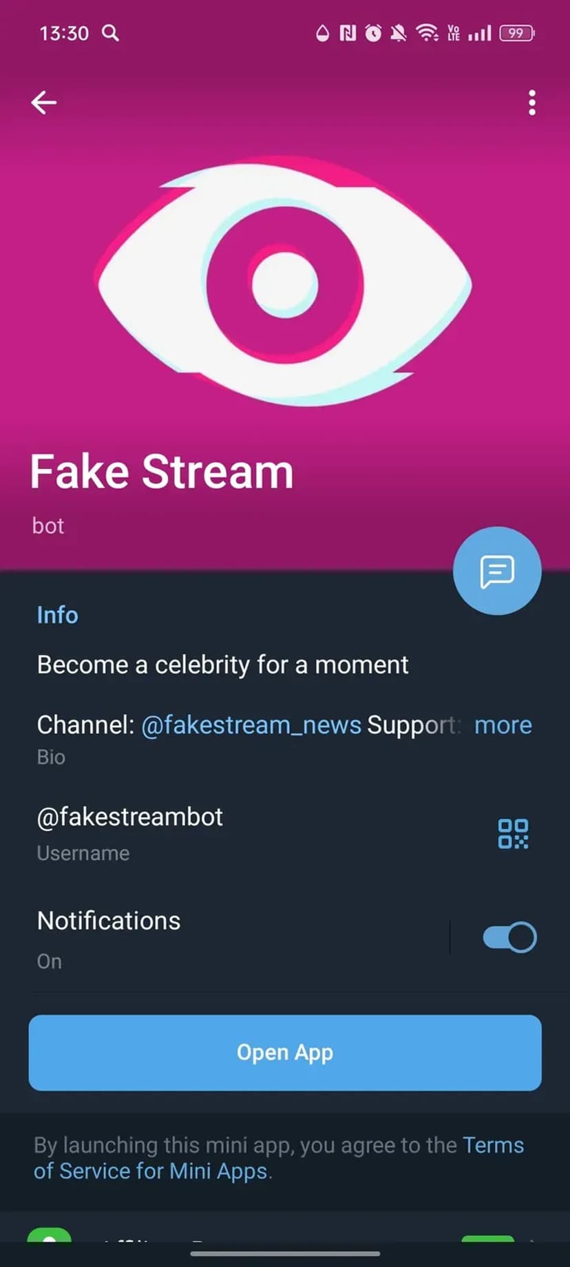 *Нажимая "Открыть в Telegram", вы перейдете к приложению Fake Stream в мессенджере Telegram