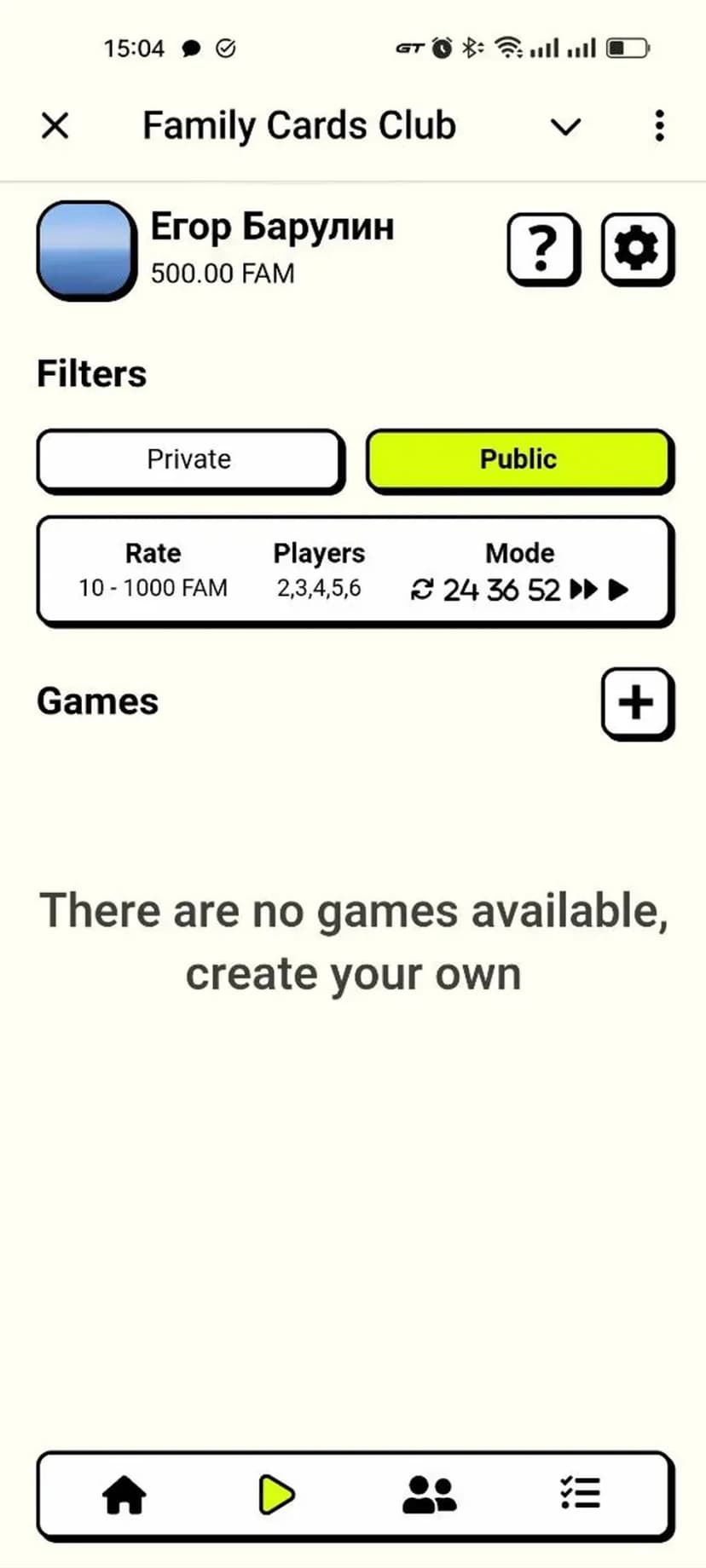 Family Cards Club — площадка для игры в «Дурак»: создавайте приватный стол или входите в открытый матч, соревнуйтесь с друзьями и случайными соперниками. Поддерживается как короткая партия, так и длительные турниры.