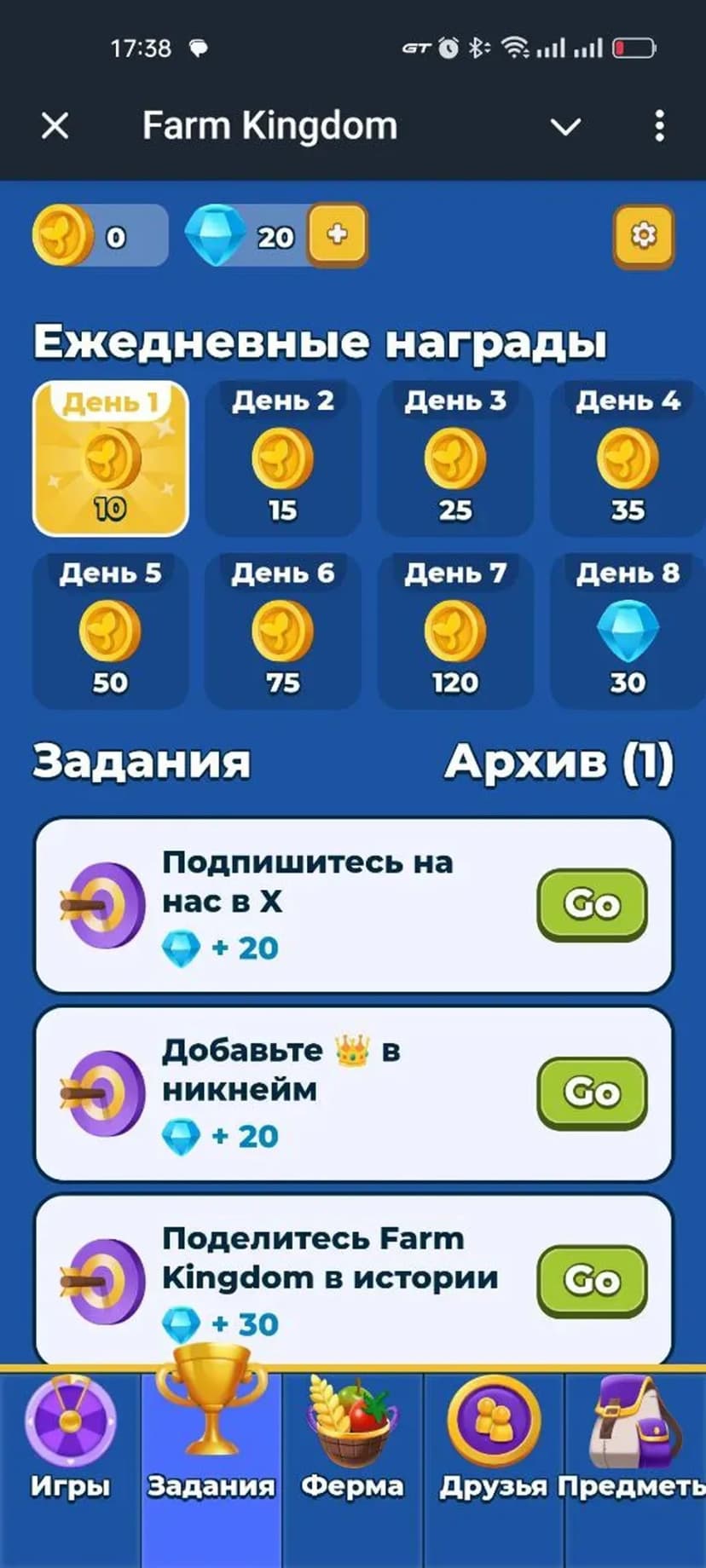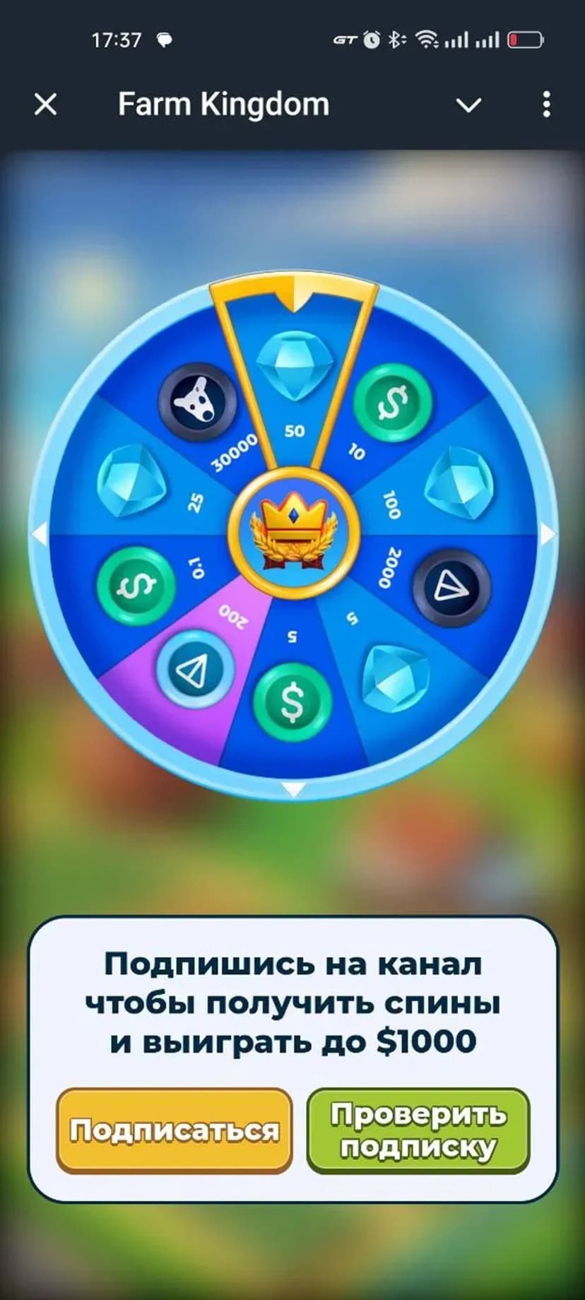 *Нажимая "Открыть в Telegram", вы перейдете к приложению Farm Kingdom в мессенджере Telegram