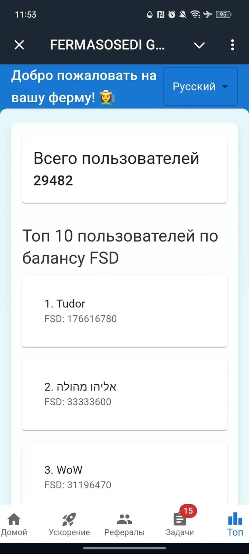 FERMASOSEDI GAME — мобильное мини‑приложение в экосистеме Telegram для создания и развития собственной виртуальной фермы. Интерфейс адаптирован под смартфоны и обеспечивает быстрый переход между игровыми режимами без отдельной установки.