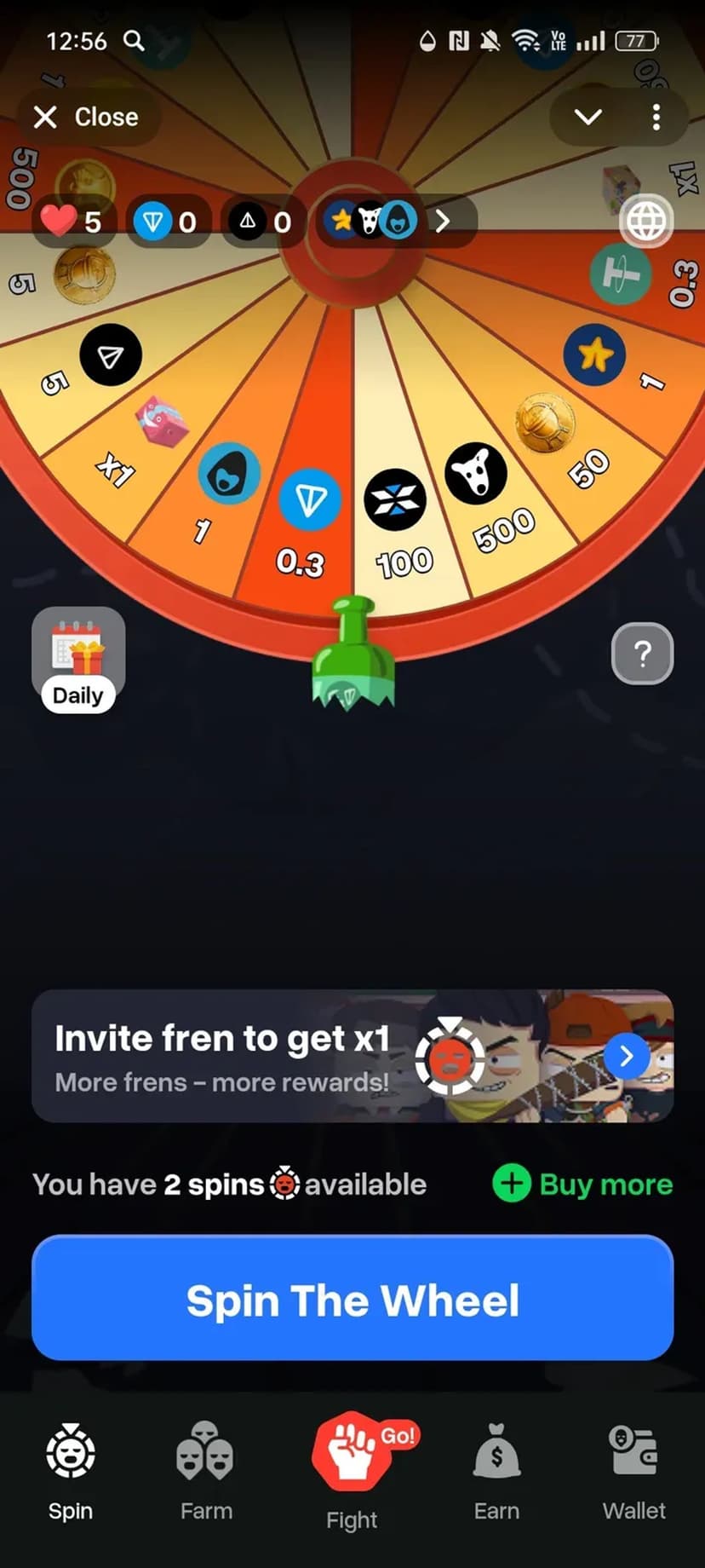 - Колесо удачи: при каждом вращении гарантированные призы — от внутриигровых ресурсов до $TON и $NOT.