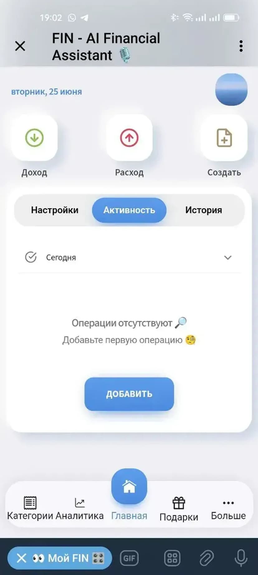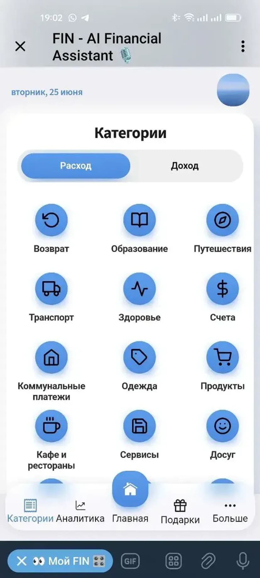 FIN - AI Financial Assistant π β ΠΏΠΎΠΌΠΎΡΠ½ΠΈΠΊ Π½Π° Π±Π°Π·Π΅ ΠΠ, ΠΊΠΎΡΠΎΡΡΠΉ ΠΏΡΠ΅ΠΎΠ±ΡΠ°Π·ΡΠ΅Ρ Π³ΠΎΠ»ΠΎΡΠΎΠ²ΡΠ΅ ΡΠΎΠΎΠ±ΡΠ΅Π½ΠΈΡ Π² ΡΠΈΠ½Π°Π½ΡΠΎΠ²ΡΠ΅ ΠΎΠΏΠ΅ΡΠ°ΡΠΈΠΈ ΠΈ Π²Π΅Π΄ΡΡ ΠΏΠ΅ΡΡΠΎΠ½Π°Π»ΡΠ½ΡΠΉ ΡΡΡΡ Π² ΡΠ°Π·Π΄Π΅Π»Π΅ Β«My FINΒ».