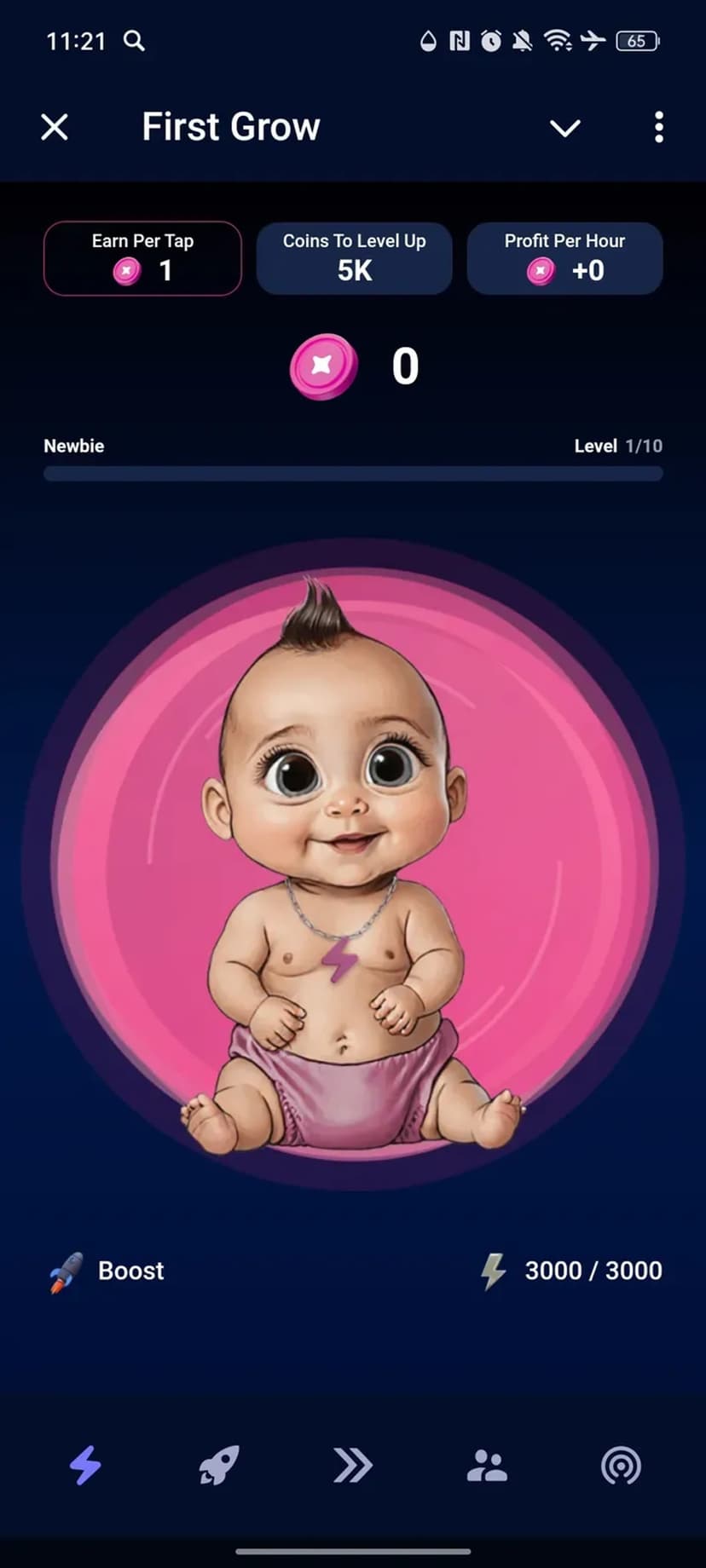 First Grow — мини‑приложение, совмещающее простую «тэппи» механику с децентрализованной экономикой на блокчейне Bahamut. Вход и регистрация выполняются через Telegram‑профиль; игровой процесс строится на многократных нажатиях по экрану, за которые начисляется внутриигровая валюта FastGrow.