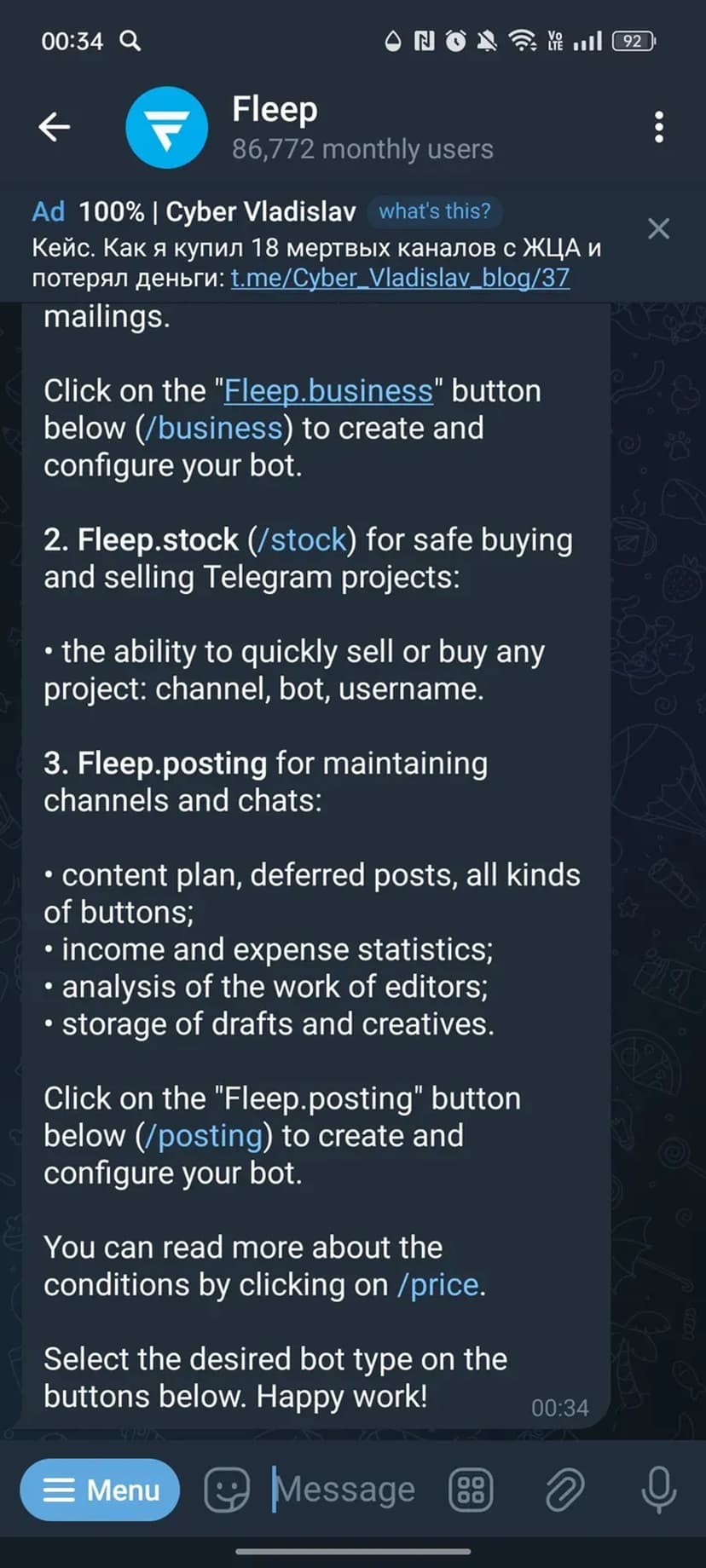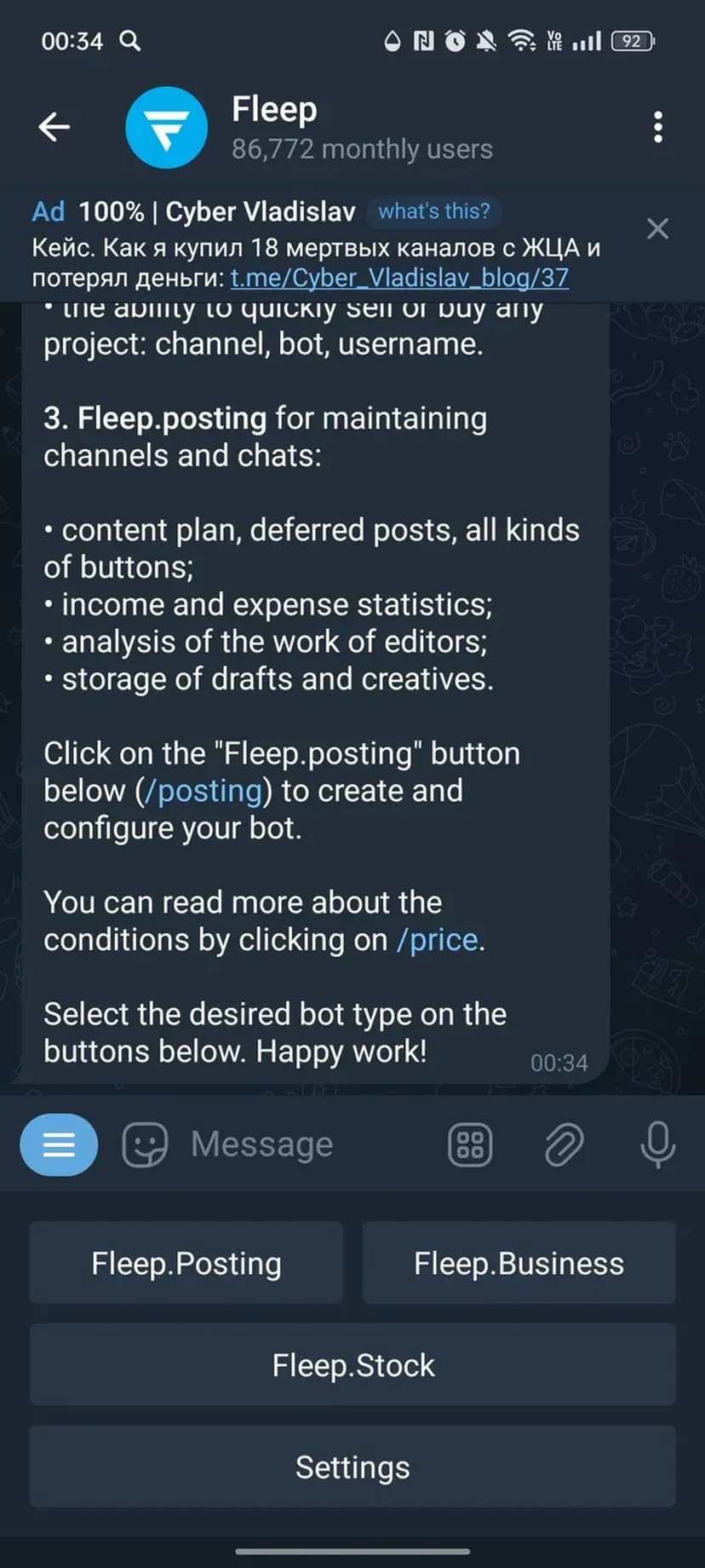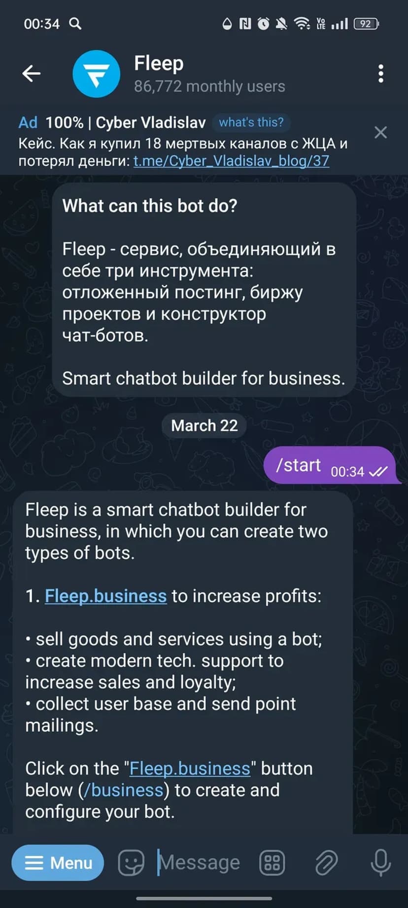 Fleep — решение для автоматизации бизнес‑коммуникаций и управления контентом в Telegram. Позволяет создавать два типа ботов: для клиентских взаимодействий и для работы с контентом, включая планирование и отложенную публикацию сообщений.