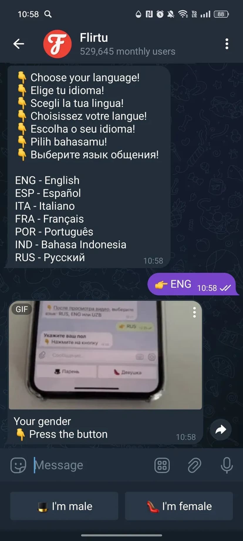 *Нажимая "Открыть в Telegram", вы перейдете к приложению Flirtu в мессенджере Telegram