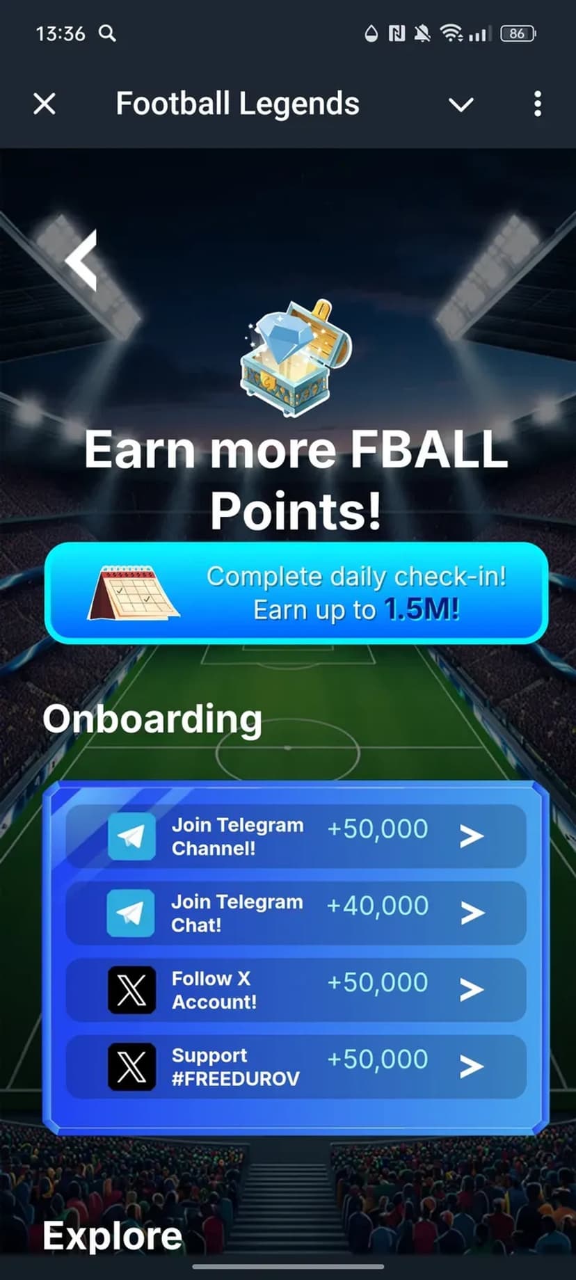 *Нажимая "Открыть в Telegram", вы перейдете к приложению Football Legends в мессенджере Telegram