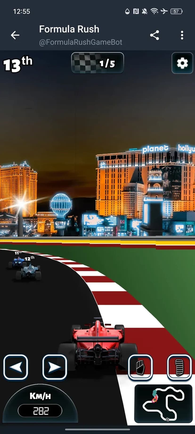 Formula Rush Game — динамичная гоночная мини‑игра с городскими трассами и тремя уровнями сложности. Управление происходит через простое меню в чате: выберите автомобиль, запустите заезд и наблюдайте за прогрессом в реальном времени.