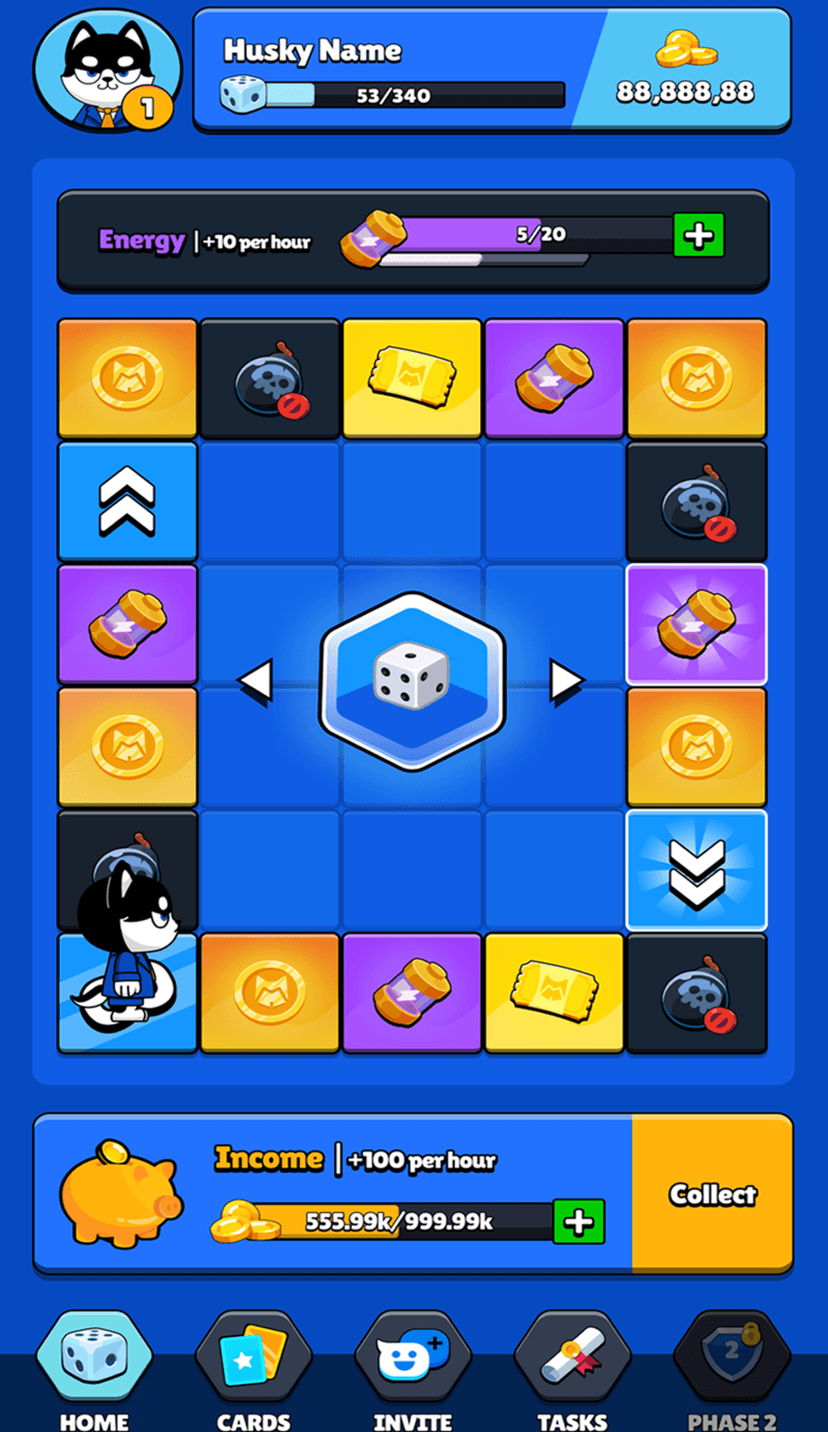 FortuneHuskyπ² β ΠΈΠ³ΡΠ° Π² ΠΆΠ°Π½ΡΠ΅ Play-to-Earn Π½Π° Π±Π»ΠΎΠΊΡΠ΅ΠΉΠ½Π΅ TON, Π³Π΄Π΅ ΠΎΡΠ½ΠΎΠ²Π½ΠΎΠΉ Ρ ΠΎΠ΄ ΠΎΠΏΡΠ΅Π΄Π΅Π»ΡΠ΅ΡΡΡ Π±ΡΠΎΡΠΊΠΎΠΌ ΠΊΡΠ±ΠΈΠΊΠ°. ΠΠ°ΠΆΠ΄ΡΠΉ ΡΠ°Π³ ΠΏΠΎ ΠΈΠ³ΡΠΎΠ²ΠΎΠΌΡ ΠΏΠΎΠ»Ρ Π΄Π°ΡΡ ΡΠ°Π½Ρ ΠΏΠΎΠ»ΡΡΠΈΡΡ Π²Π½ΡΡΡΠΈΠΈΠ³ΡΠΎΠ²ΡΠ΅ ΠΌΠΎΠ½Π΅ΡΡ, Π±ΠΎΠ½ΡΡΡ ΠΈΠ»ΠΈ NFT ΠΈ ΠΏΡΠΎΠ΄Π²ΠΈΠ½ΡΡΡΡΡ Π² ΠΏΡΠΎΠ³ΡΠ΅ΡΡΠ΅ ΠΏΠ΅ΡΡΠΎΠ½Π°ΠΆΠ°.