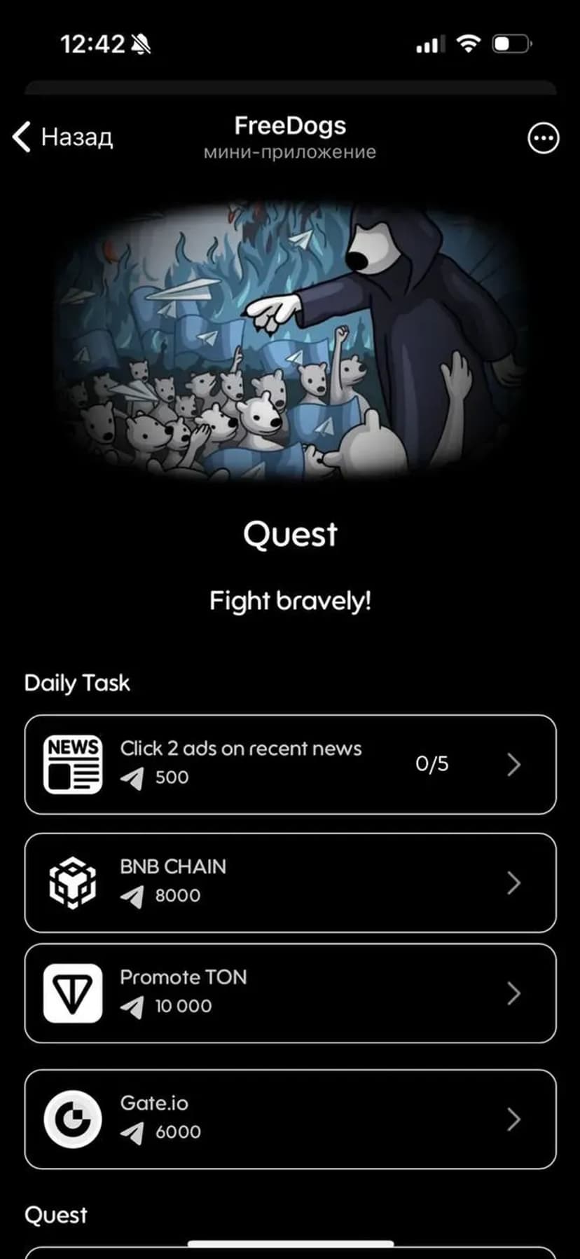 *Нажимая "Открыть в Telegram", вы перейдете к приложению FreeDogs в мессенджере Telegram