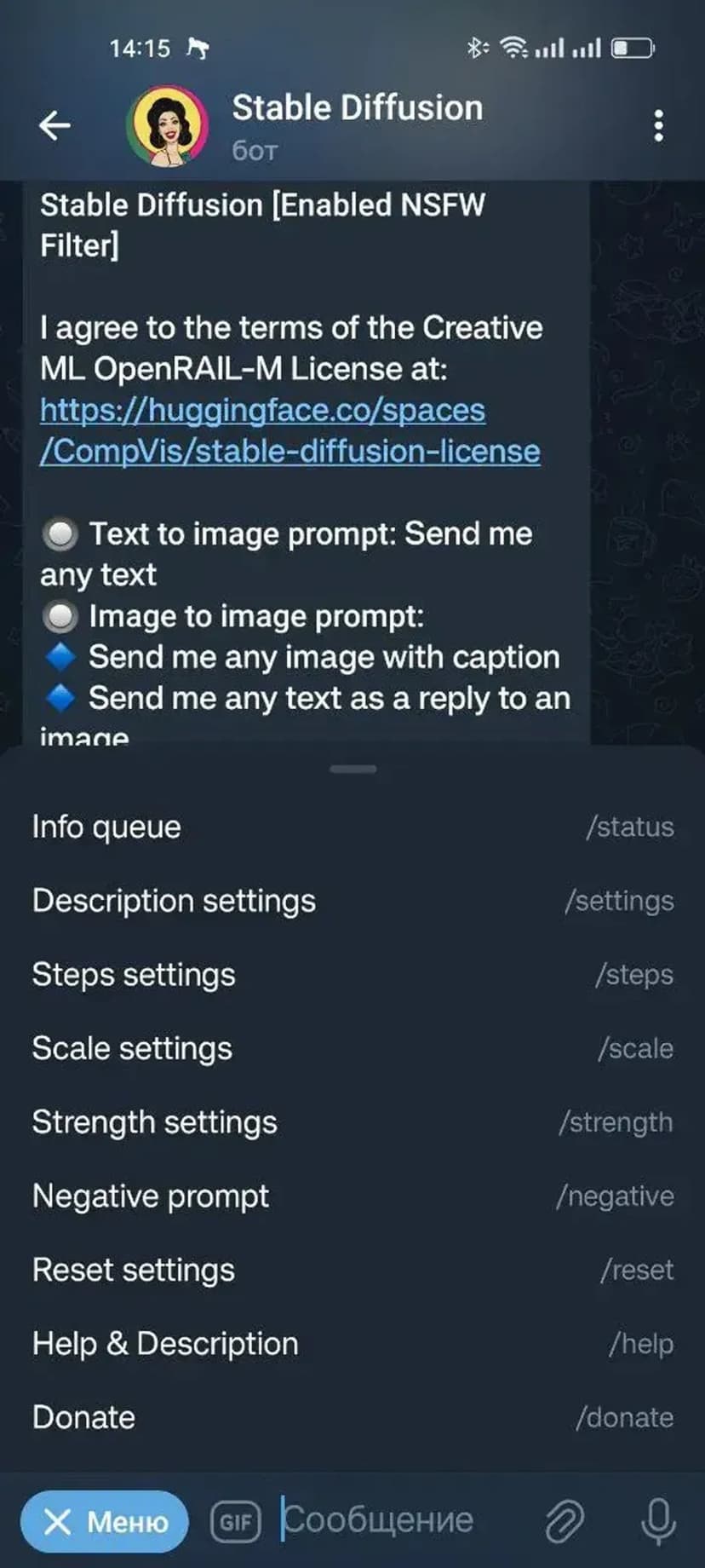 Free image creator | StableDiffusion — сервис внутри Telegram для быстрой генерации изображений с помощью алгоритмов StableDiffusion. Позволяет получать иллюстрации по описанию или преобразовывать загруженные картинки.