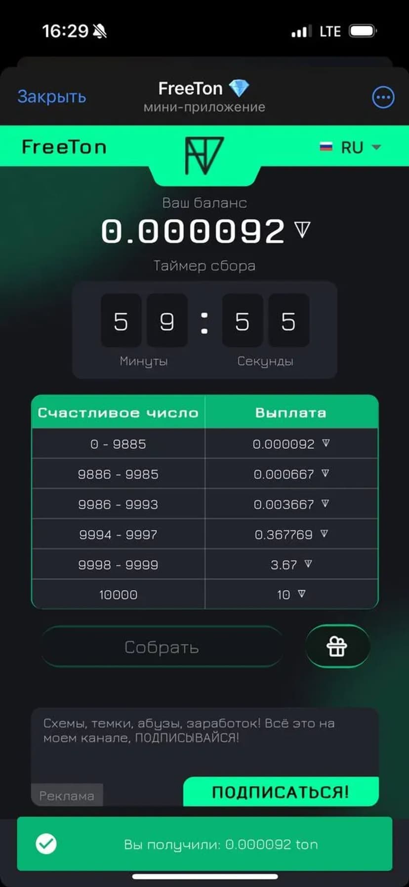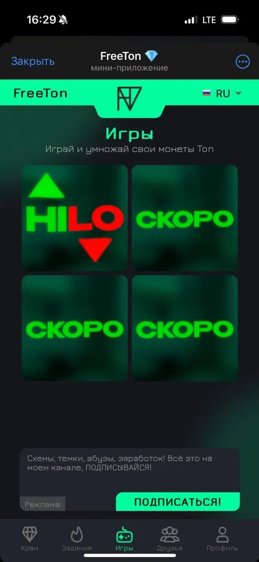 *ΠΠ°ΠΆΠΈΠΌΠ°Ρ "ΠΡΠΊΡΡΡΡ Π² Telegram", Π²Ρ ΠΏΠ΅ΡΠ΅ΠΉΠ΄Π΅ΡΠ΅ ΠΊ ΠΏΡΠΈΠ»ΠΎΠΆΠ΅Π½ΠΈΡ FreeTon π Π² ΠΌΠ΅ΡΡΠ΅Π½Π΄ΠΆΠ΅ΡΠ΅ Telegram