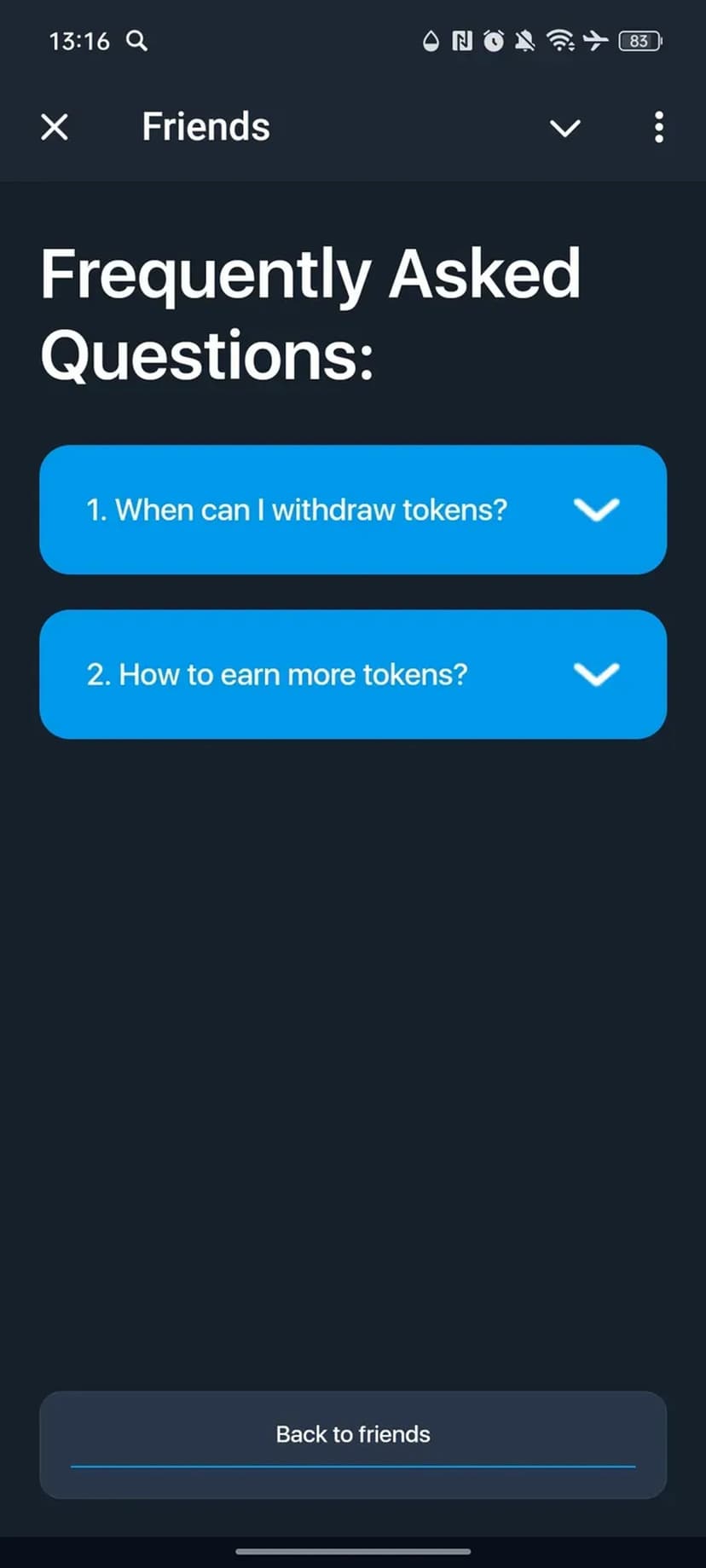 За расширение возможностей предусмотрена реферальная программа: дополнительные $FRIENDS выдаются за каждого успешно присоединившегося приглашённого пользователя. Внутри интерфейса доступна система учёта полученных и потраченных токенов.