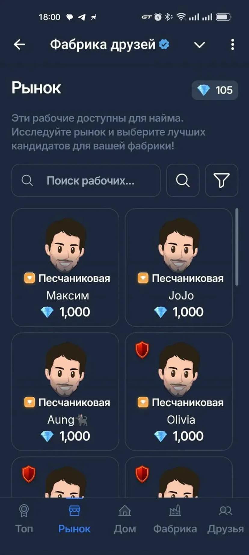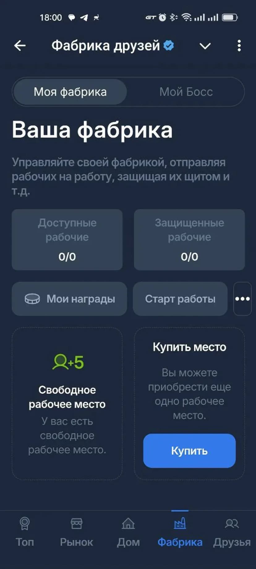 Friends Factory — экономическая игра, в которой вы развиваете виртуальную фабрику: нанимаете и продаёте «работников», отправляете их добывать алмазы и стараетесь подняться в таблице лидеров.