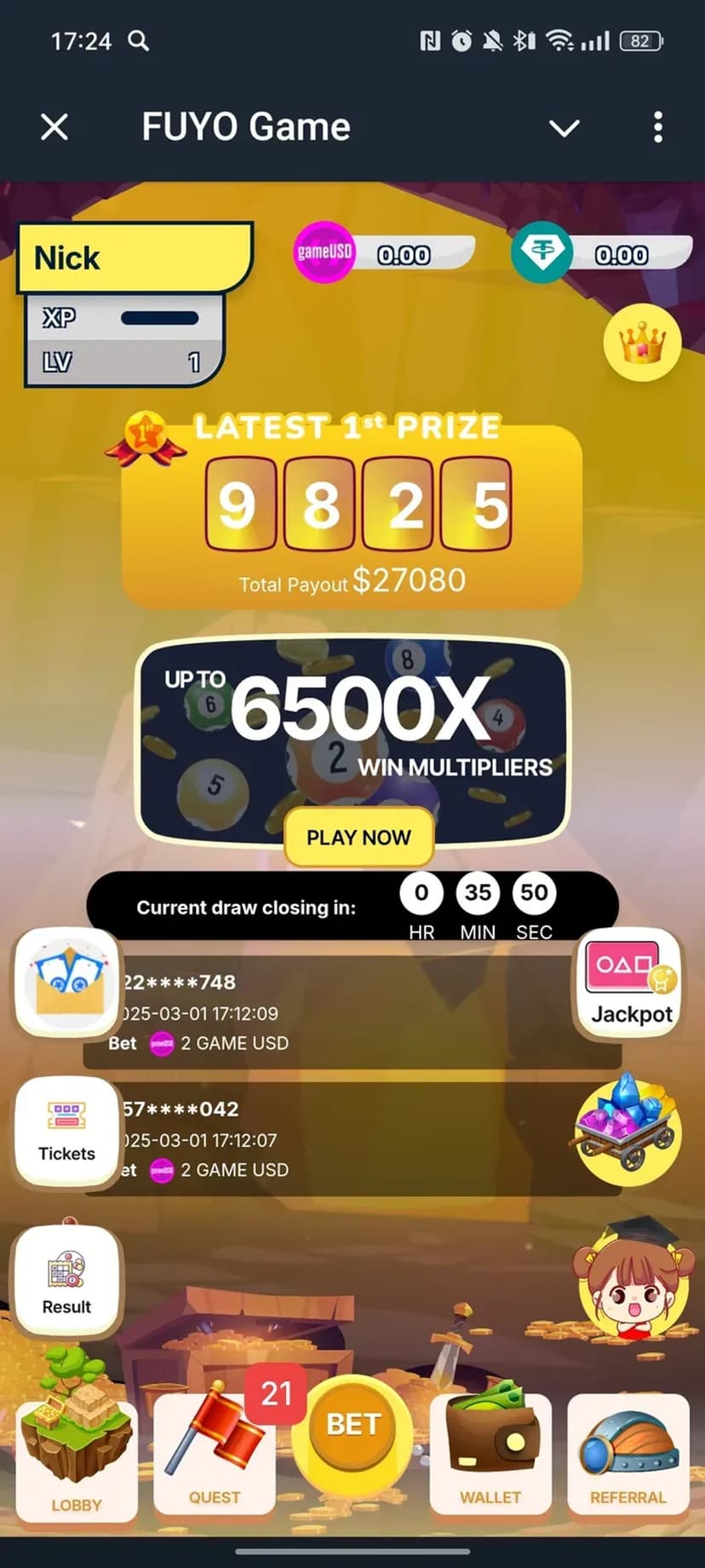 FUYO Game — on-chain лотерея с поддержкой AI‑агента, объединяющая игровые механики и возможности Web3. Приложение рассчитано на пользователей, стремящихся к новым способам игры и дополнительному пассивному доходу.