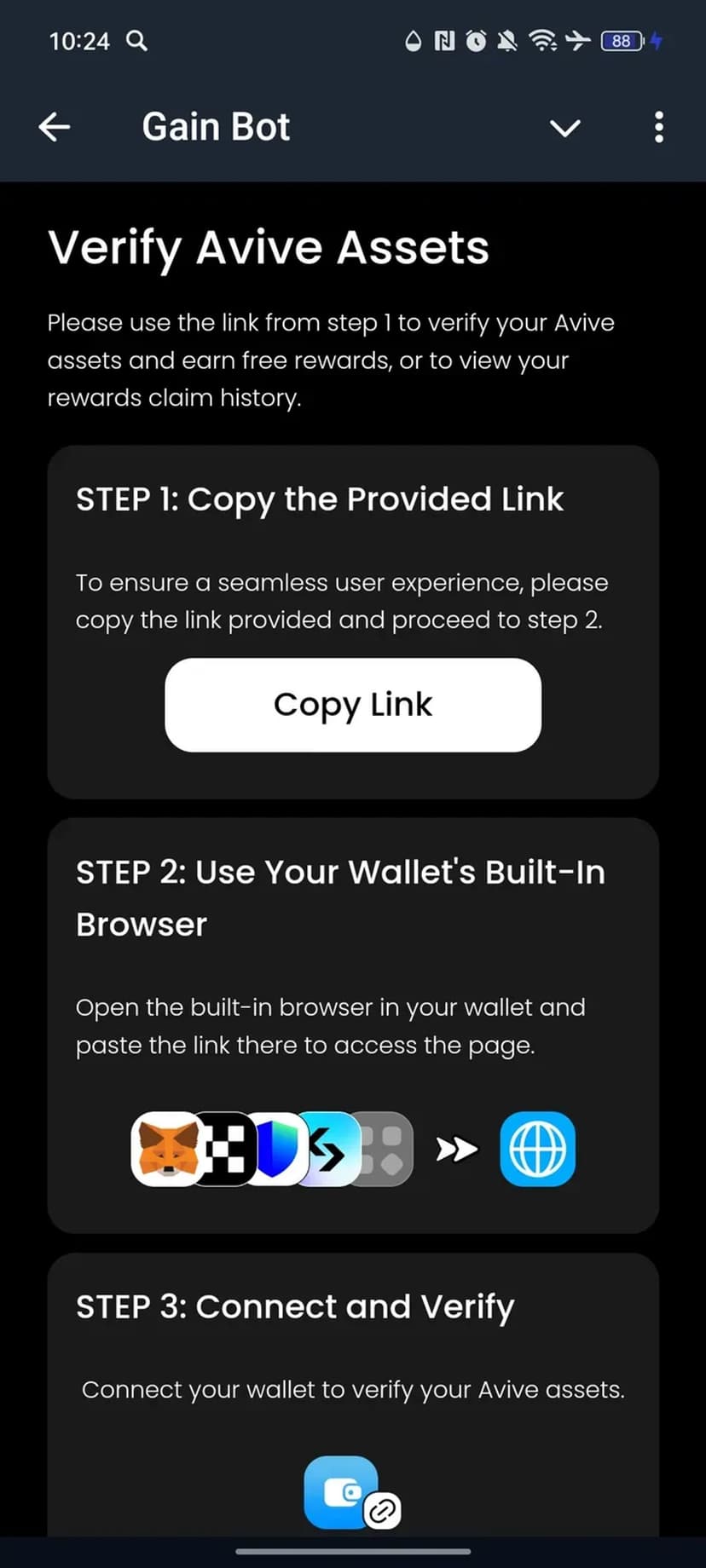 Gain Bot предоставляет быстрый доступ к ключевым возможностям Web3 и работе с криптовалютами прямо внутри мессенджера. Все функции оформлены простым и понятным интерфейсом, без необходимости перехода на внешние платформы.