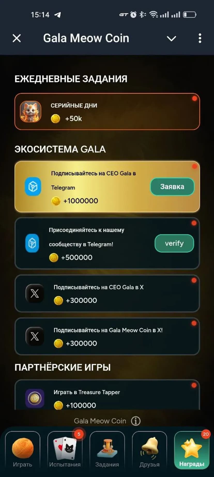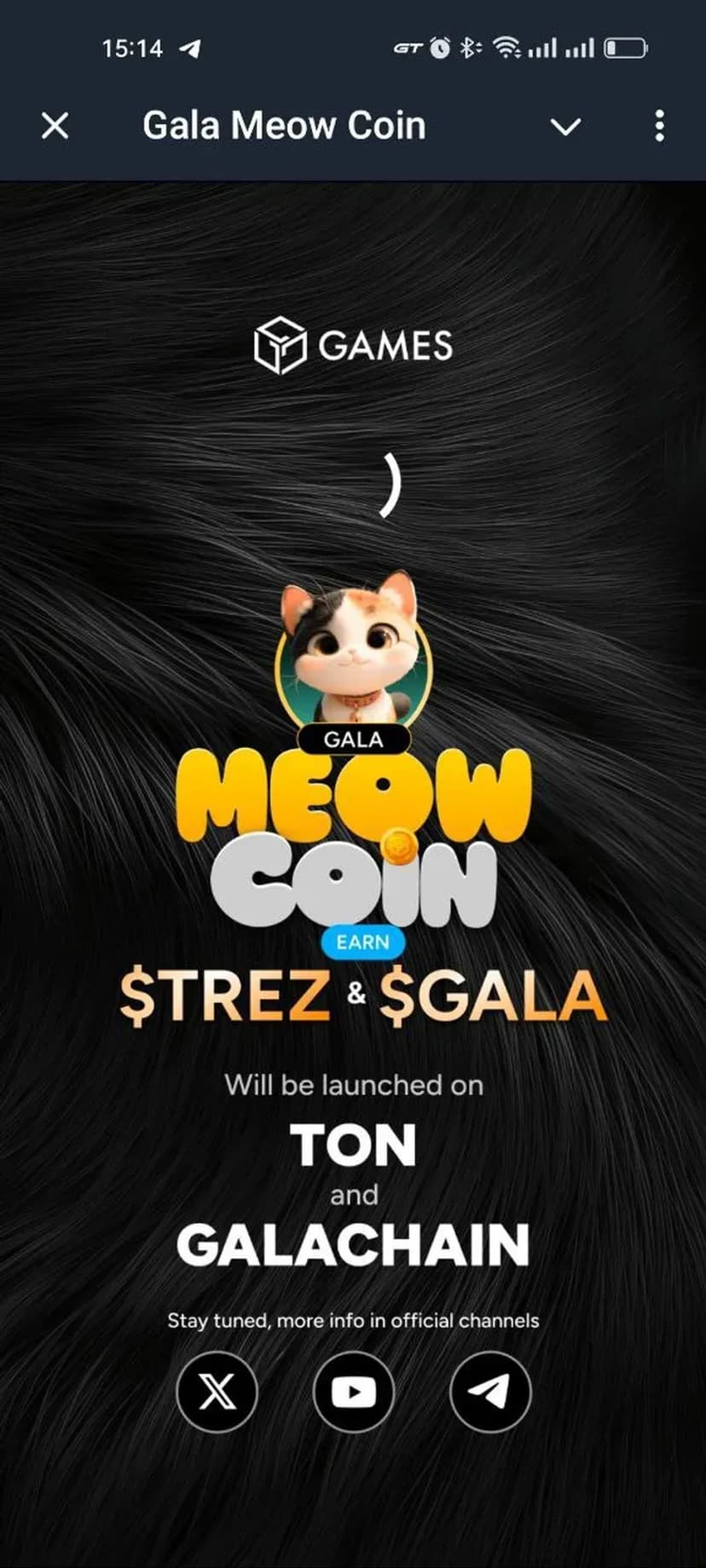*Нажимая "Открыть в Telegram", вы перейдете к приложению Gala Meow Coin в мессенджере Telegram