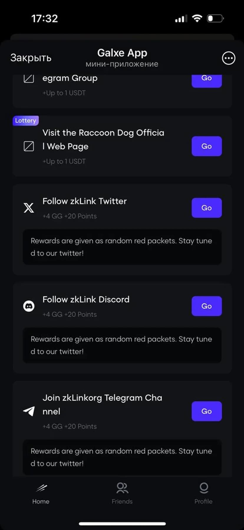 *Нажимая "Открыть в Telegram", вы перейдете к приложению Galxe App в мессенджере Telegram