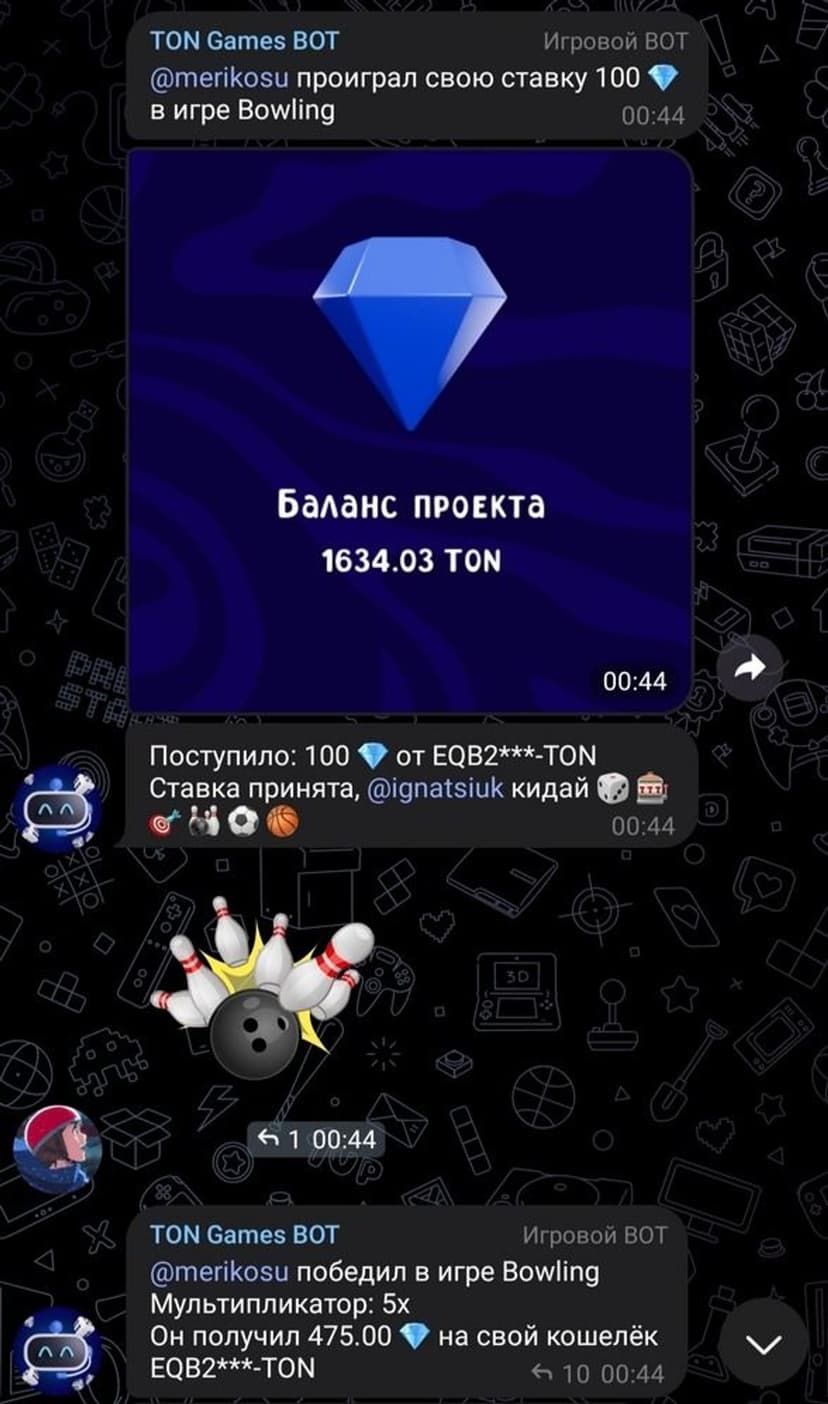 - Интеграция с кошельком: поддерживается пополнение и вывод через Telegram‑кошелёк.