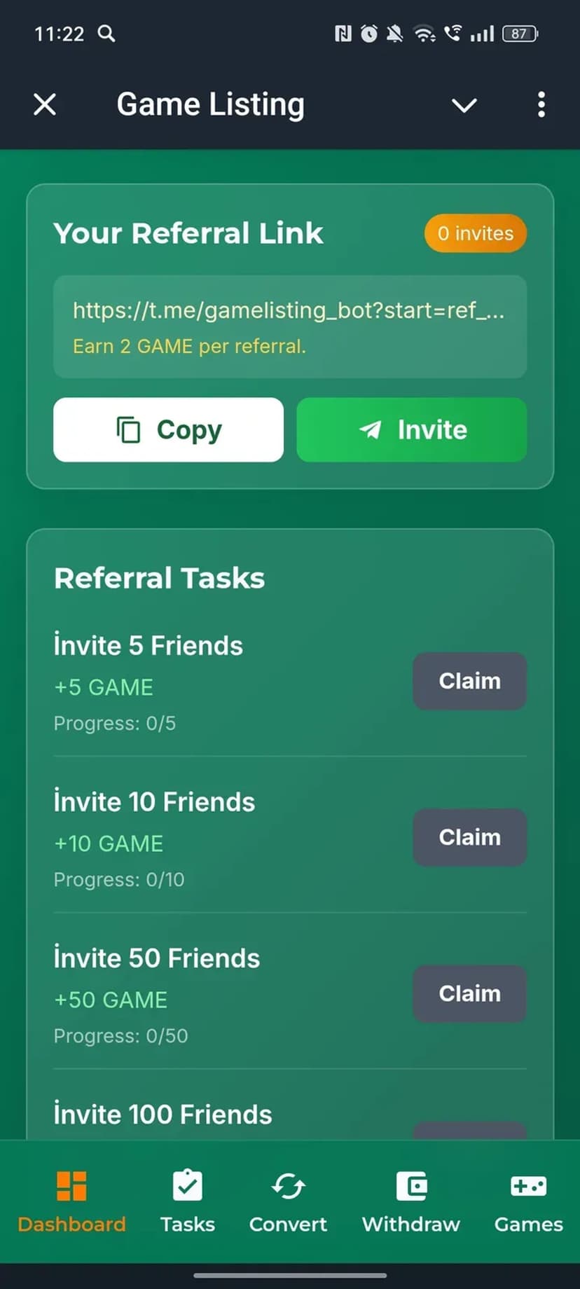 Game Listing — Telegram-бот, который оповещает о новых игровых и криптопроектах и предоставляет доступ к бесплатным airdrop с наградами в Ton Coin.