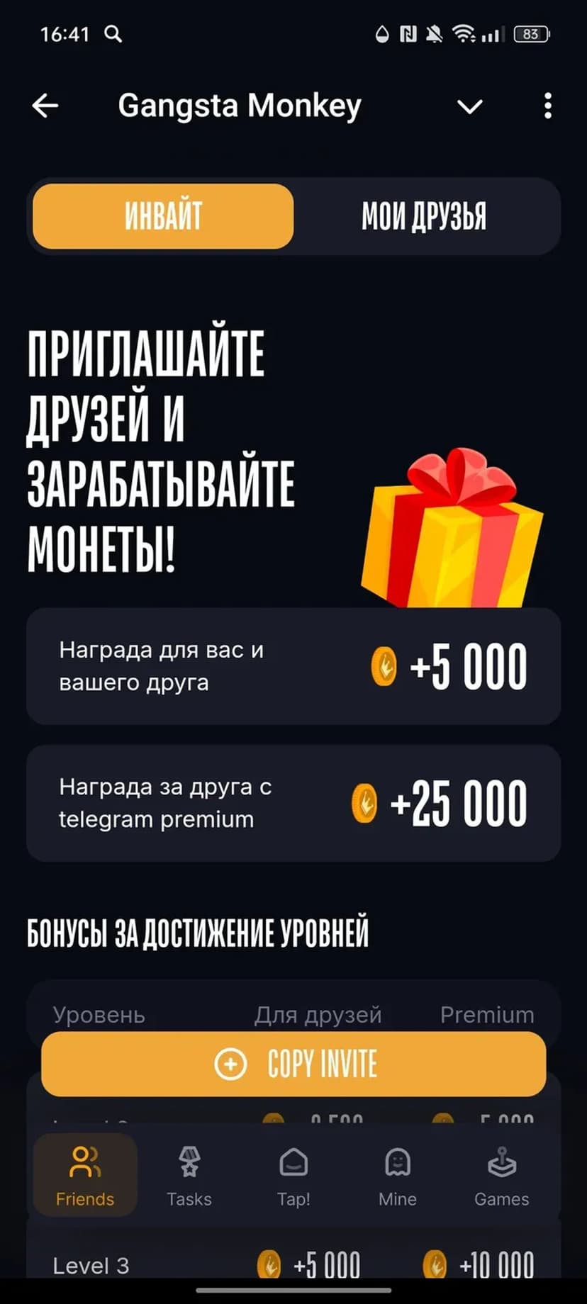 *Нажимая "Открыть в Telegram", вы перейдете к приложению Gangsta Monkey в мессенджере Telegram