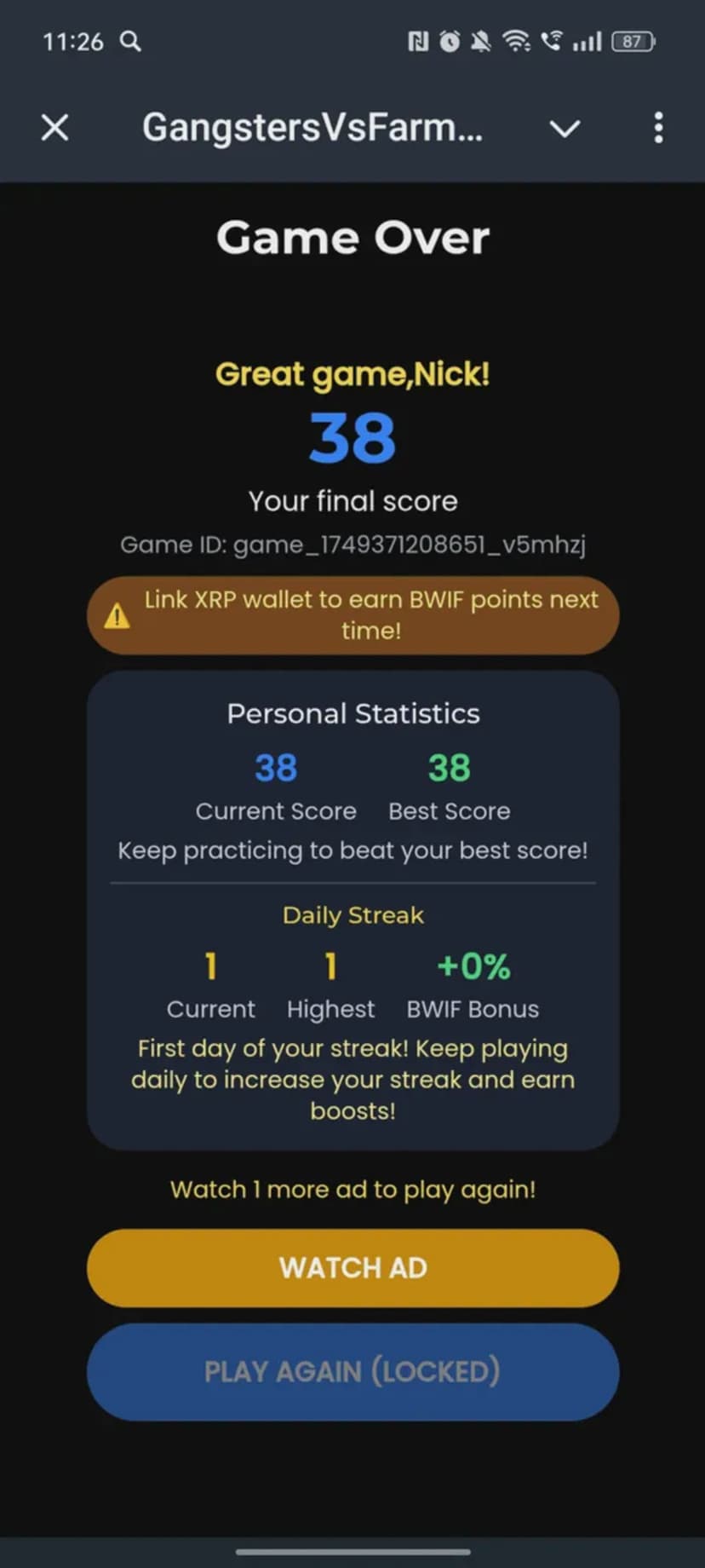 Дополнительно: по желанию можно связать XRP-кошелёк, чтобы получать BWIF-поинты; это не обязательно для игры, но открывает дополнительные возможности конкуренции.