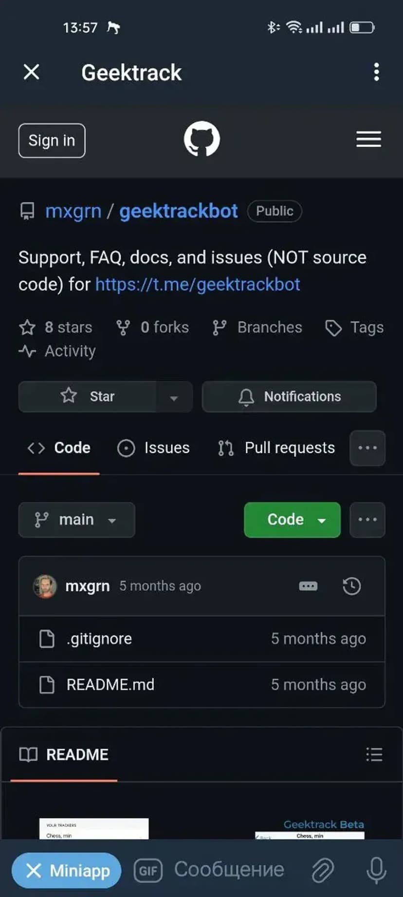 *Нажимая "Открыть в Telegram", вы перейдете к приложению Geektrack в мессенджере Telegram