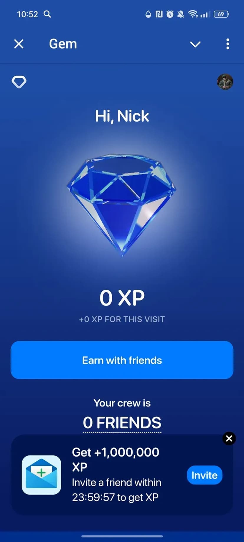 - Игровая механика: интуитивный Gem Spinner — спиннер, похожий на игровой автомат, даёт мгновенное зачисление XP.