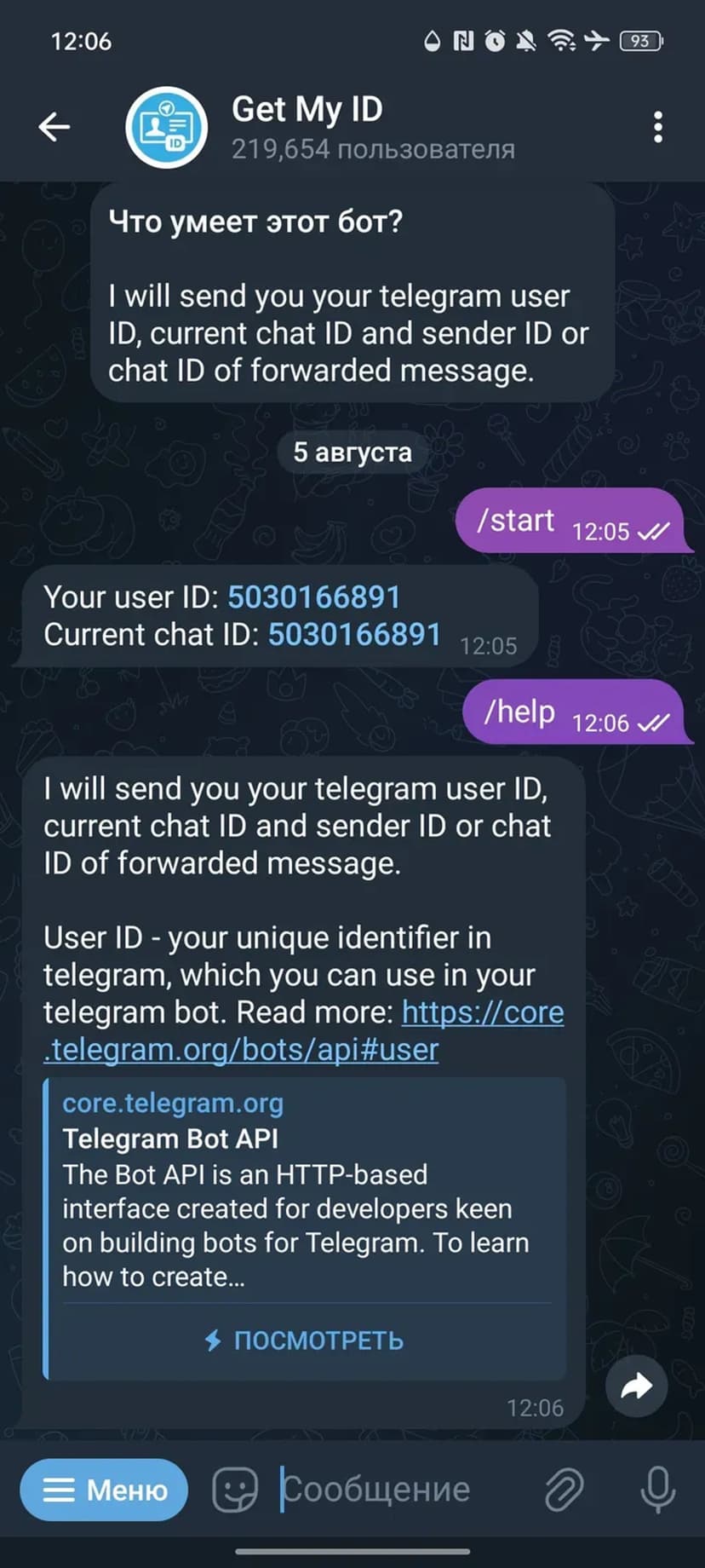 *Нажимая "Открыть в Telegram", вы перейдете к приложению Get My ID в мессенджере Telegram