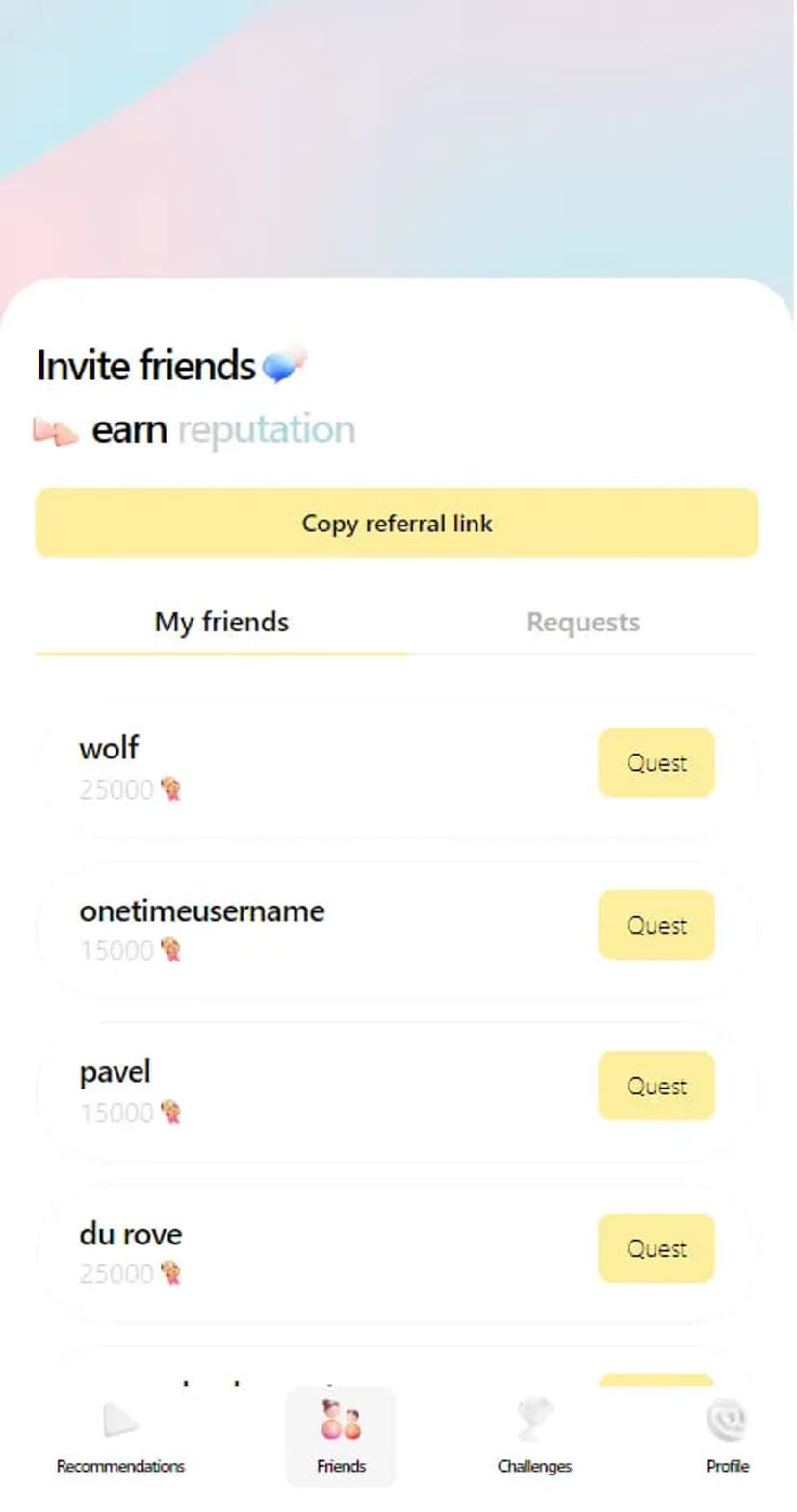 GetQuest предлагает подборку разнообразных челленджей и заданий с персональной лентой рекомендаций, формируемой на основе интересов и активности пользователя.