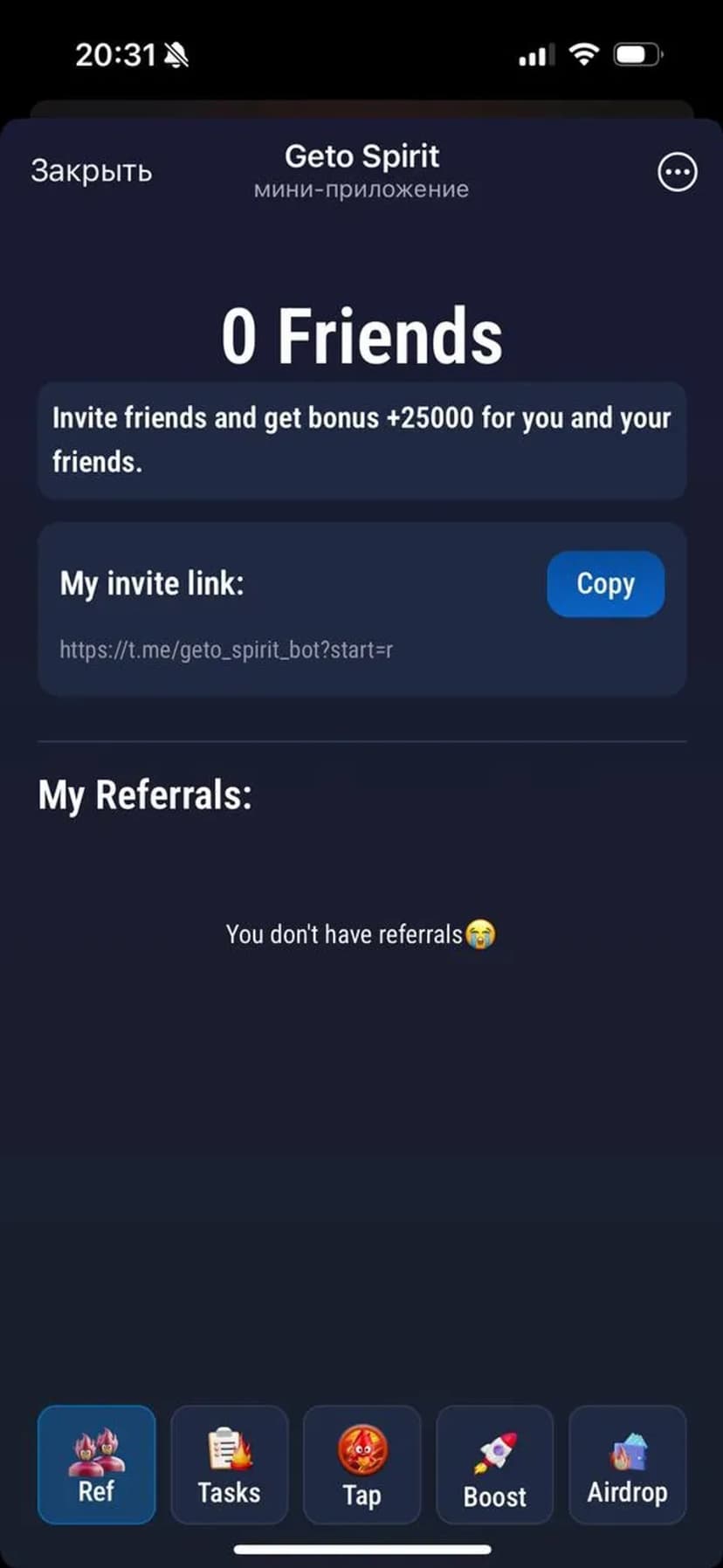 Geto Spirit — игровая реферальная платформа внутри Telegram, построенная на блокчейне TON для децентрализованного распределения токенов GETO. Механика поощряет привлечение новых участников: вознаграждения начисляются за пользователей, пришедших по рекомендации, а все операции регистрируются в смарт‑контрактах TON.