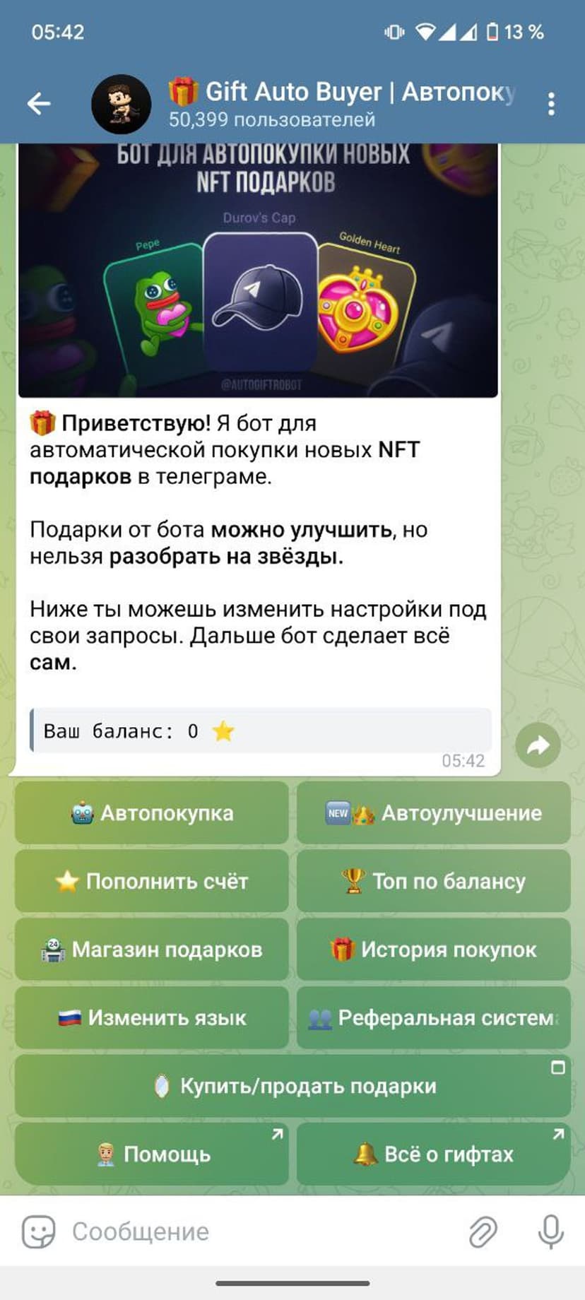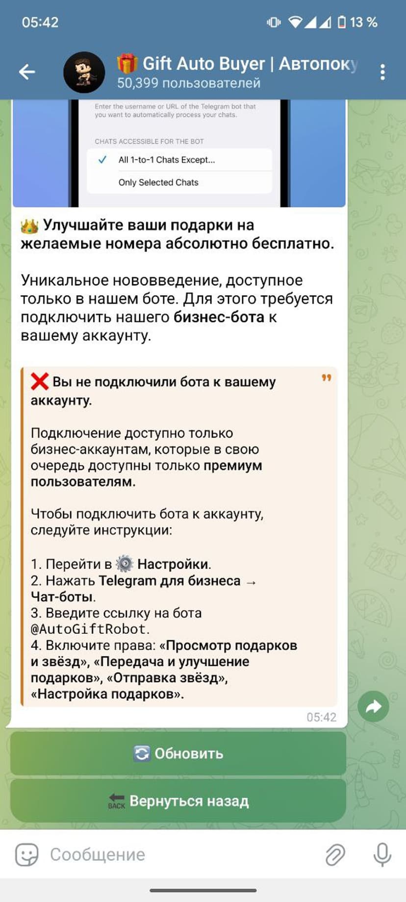 *Нажимая "Открыть в Telegram", вы перейдете к приложению Gift Auto Buyer в мессенджере Telegram