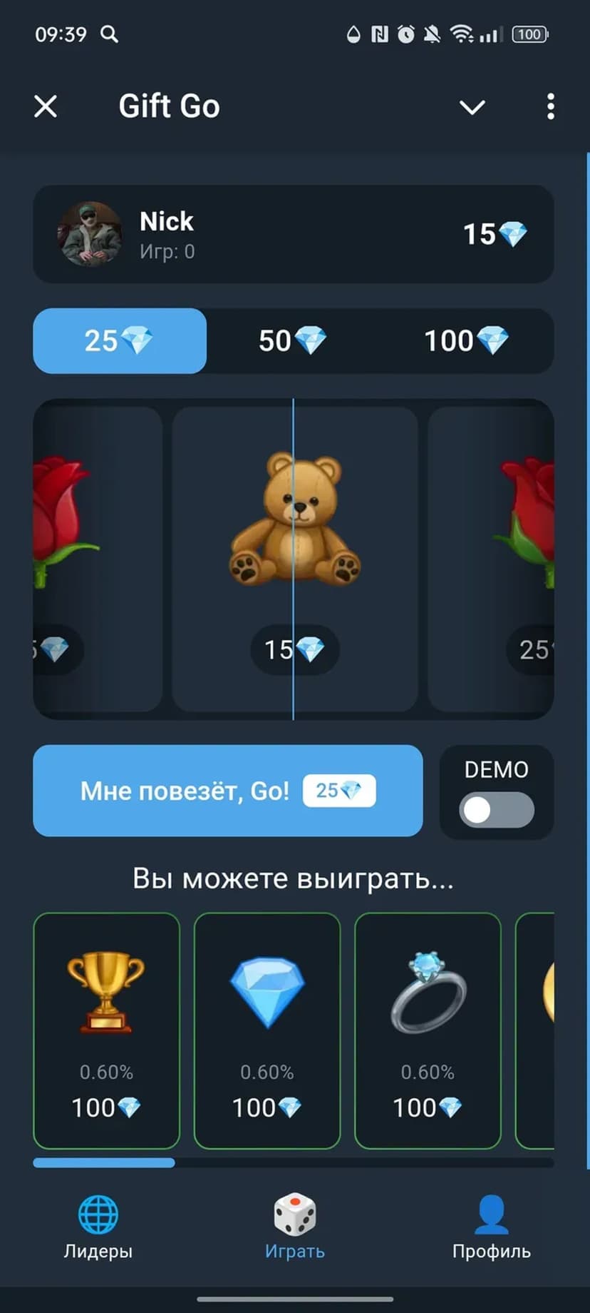 *Нажимая "Открыть в Telegram", вы перейдете к приложению Gift Go в мессенджере Telegram