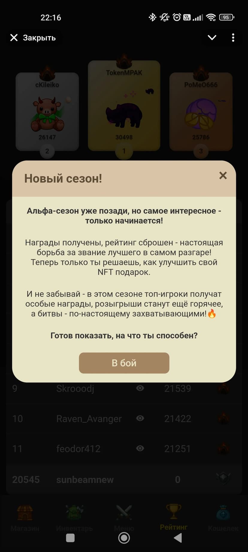 Экономика и награды: основная валюта — Telegram Stars. Победа в бою приносит 5–10 Stars, в турнирах — до 50 Stars и уникальные артефакты. Редкие NFT можно продавать на внутреннем рынке или выводить через TON‑кошелёк (минимальная сумма вывода — 100 Stars). По статистике, около 15% активных игроков зарабатывают более 200 Stars в месяц.