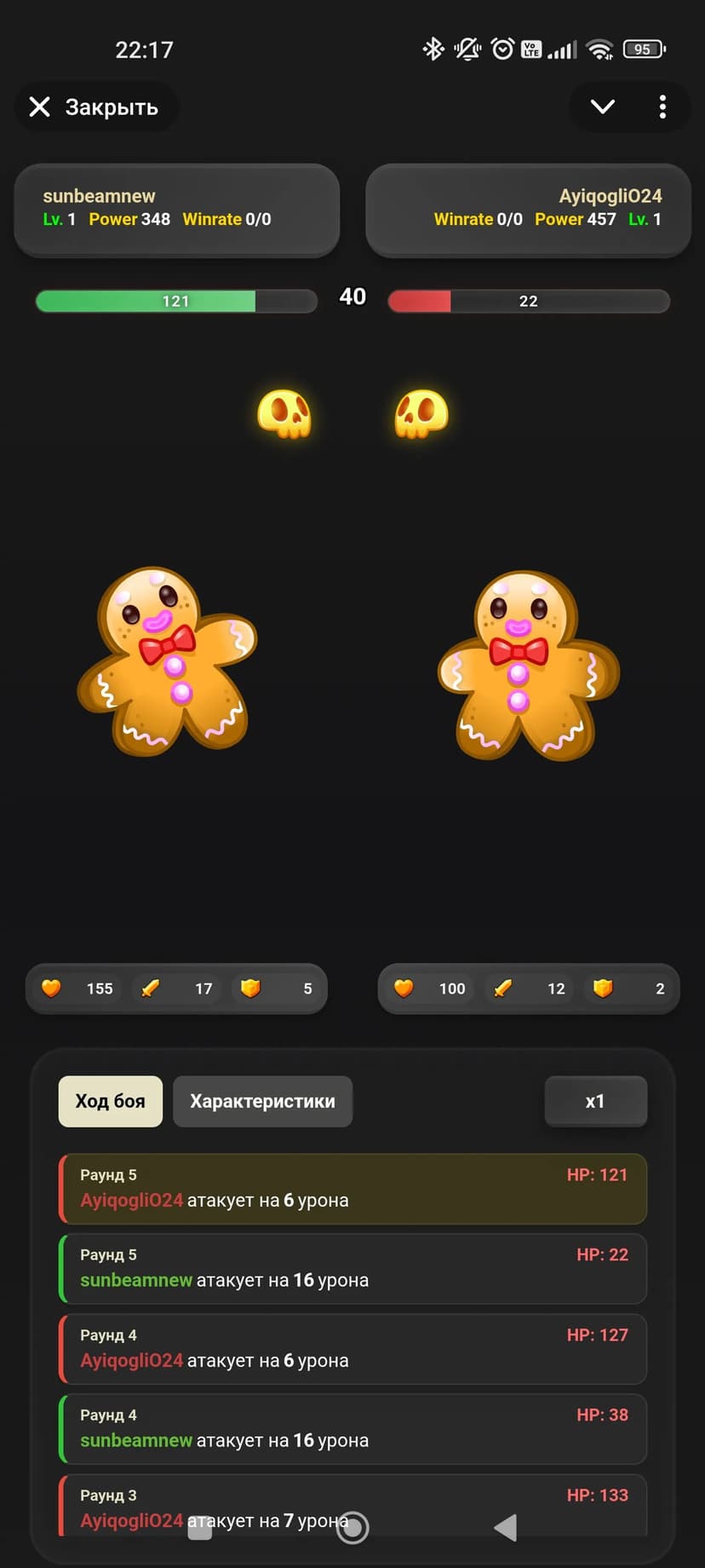 - Автоматические дуэли 1×1, где результат зависит от параметров и тактики.