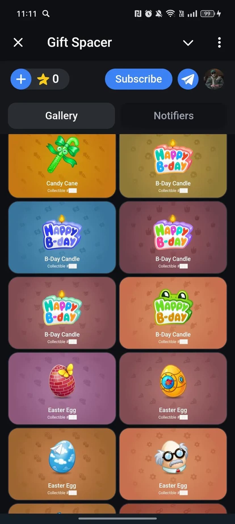Gift Spacer предоставляет доступ к одной из крупнейших баз подарков прямо в Telegram. Интерфейс сосредоточен на быстром поиске: при запуске доступна строка поиска, фильтры и готовые подборки по популярным запросам.