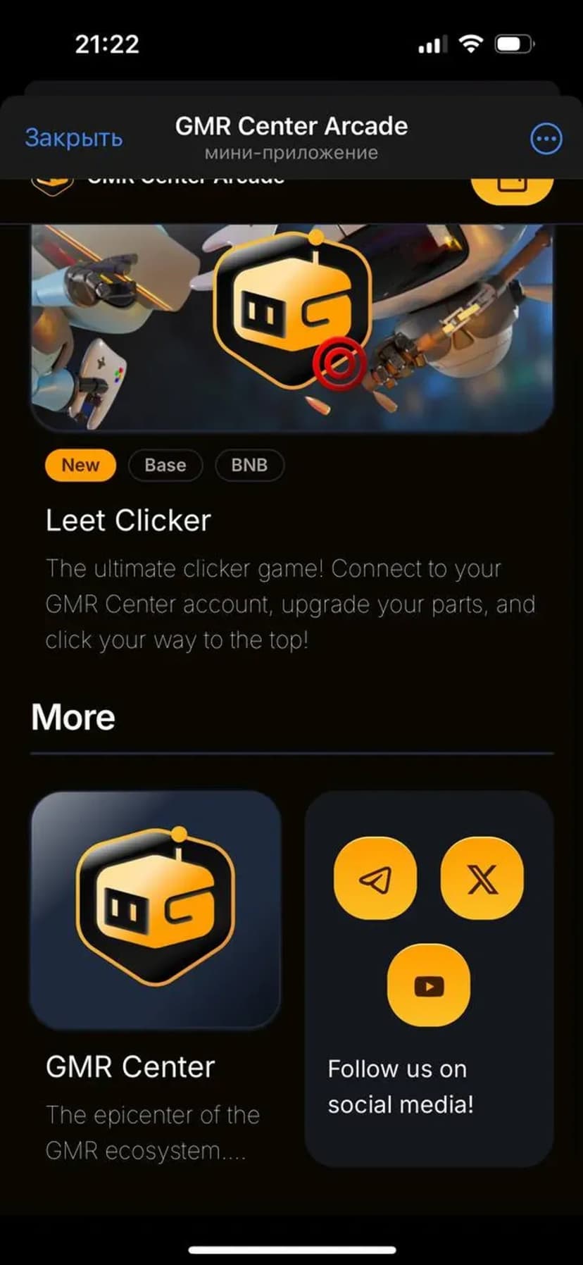 *Нажимая "Открыть в Telegram", вы перейдете к приложению GMR Center Arcade в мессенджере Telegram